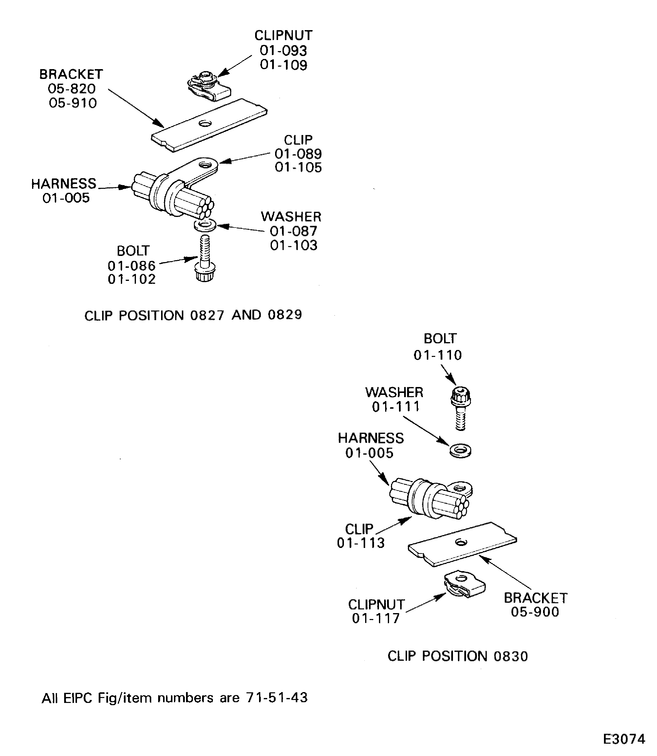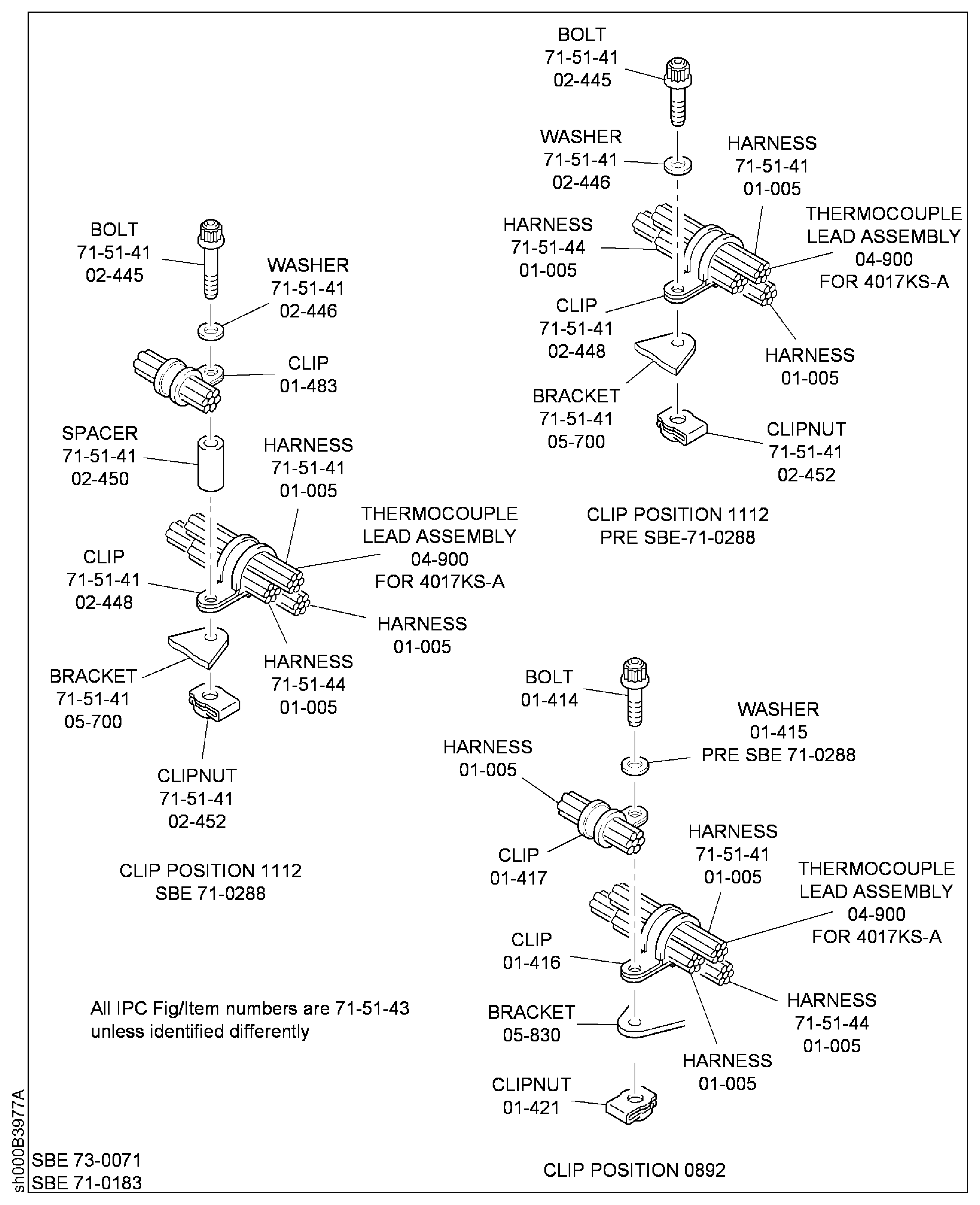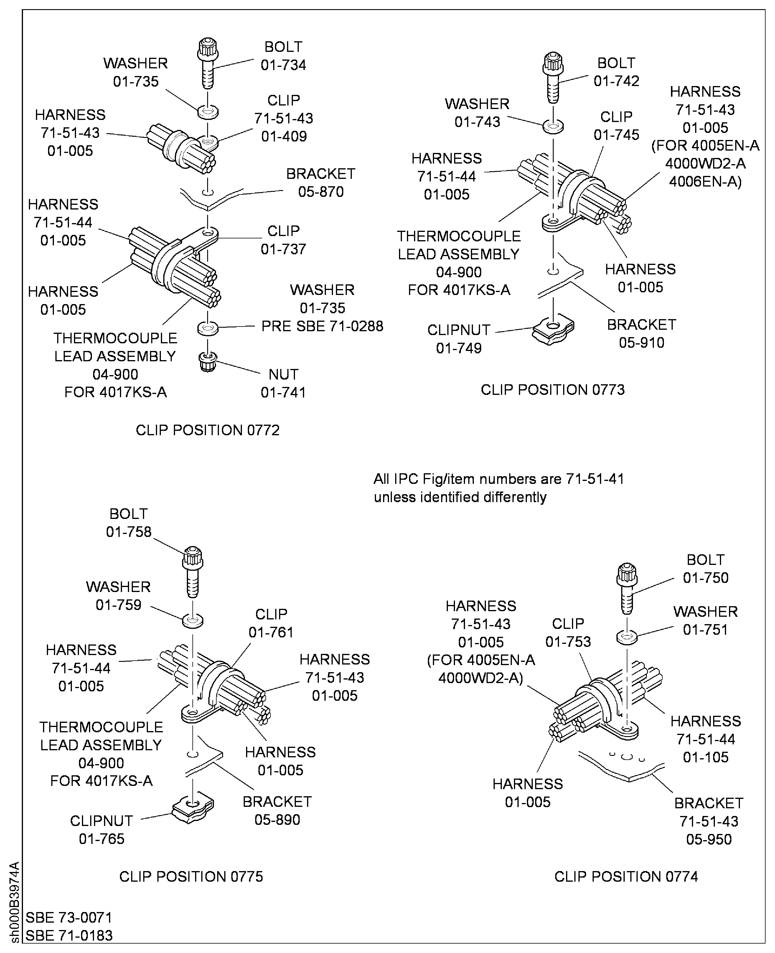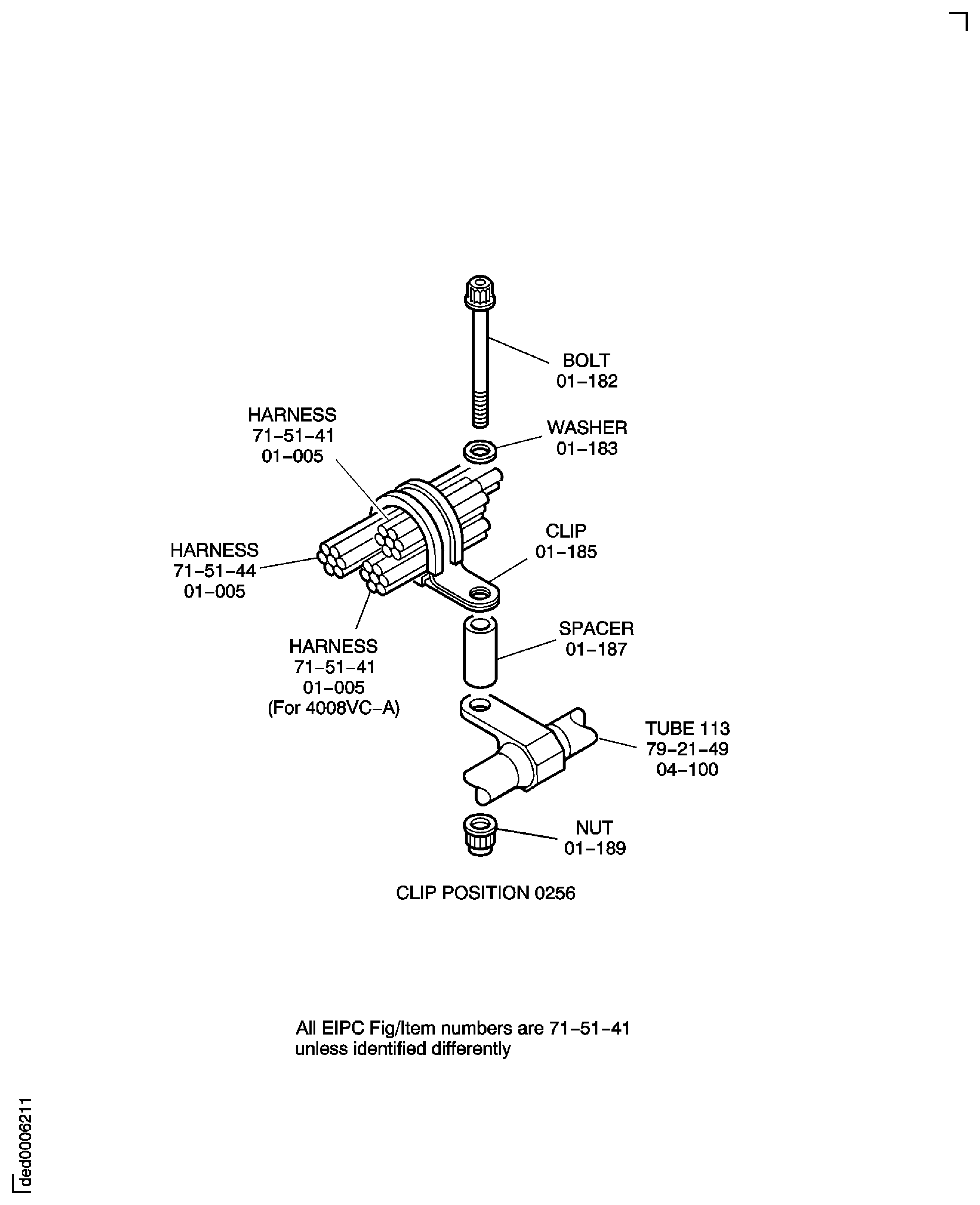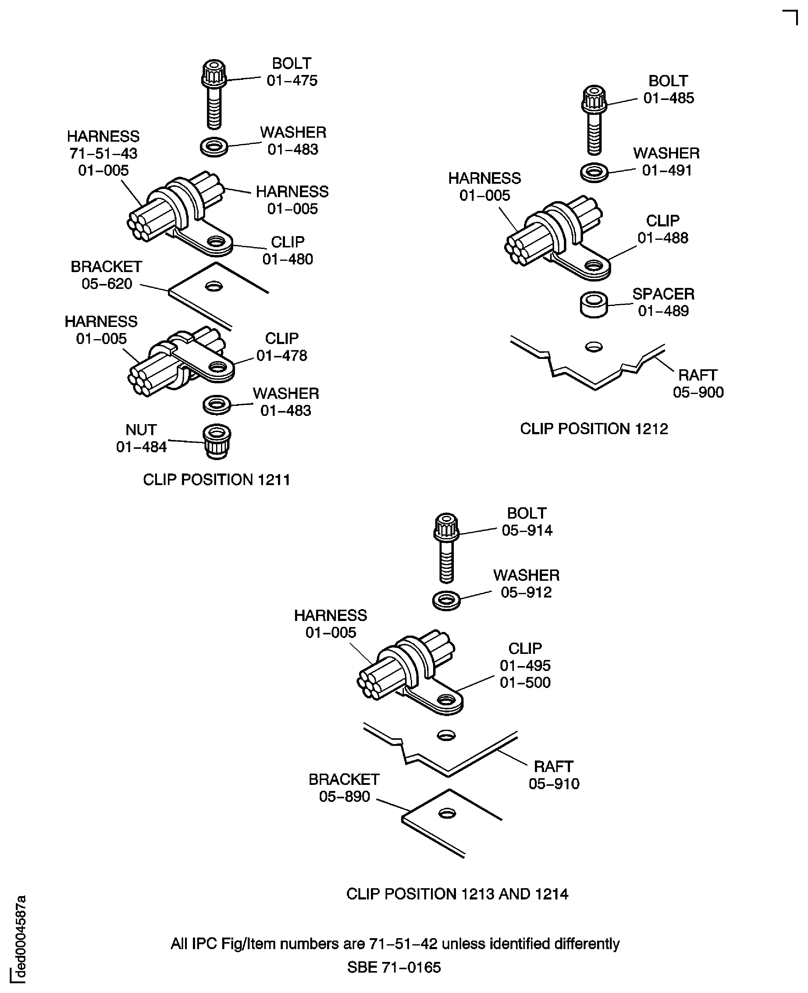 Because of the differences between the harness diameters, the specified clip could be too large or too small. You can use a clip from a range of six clips (that have the same part numbers) refer to the IPC (70-40-10). If the harness diameter is between two of the clips in the range, use the larger clip. When you do this use CoMat 02-148 ADHESIVE TAPE (ELECTRICAL) to increase the harness diameter.