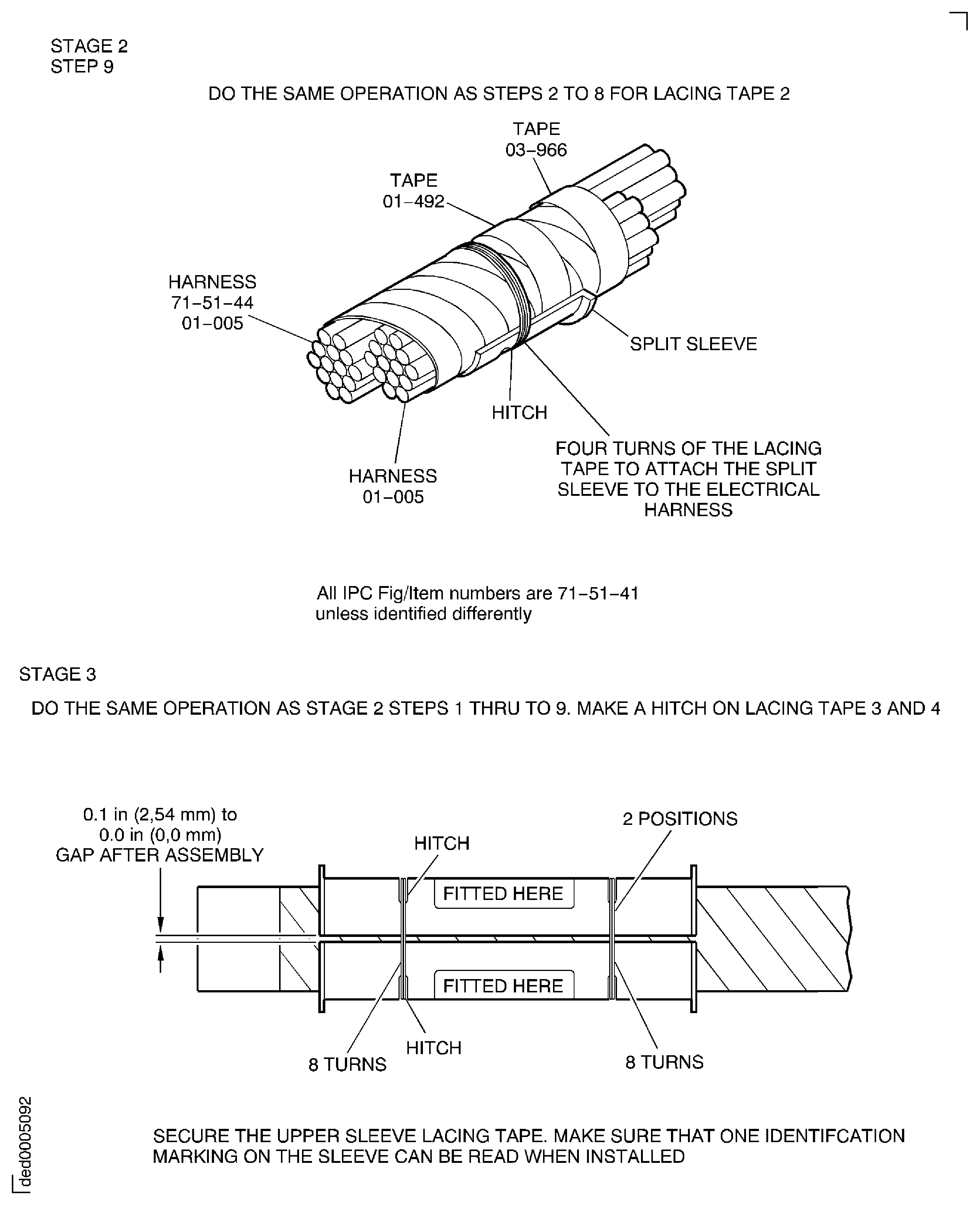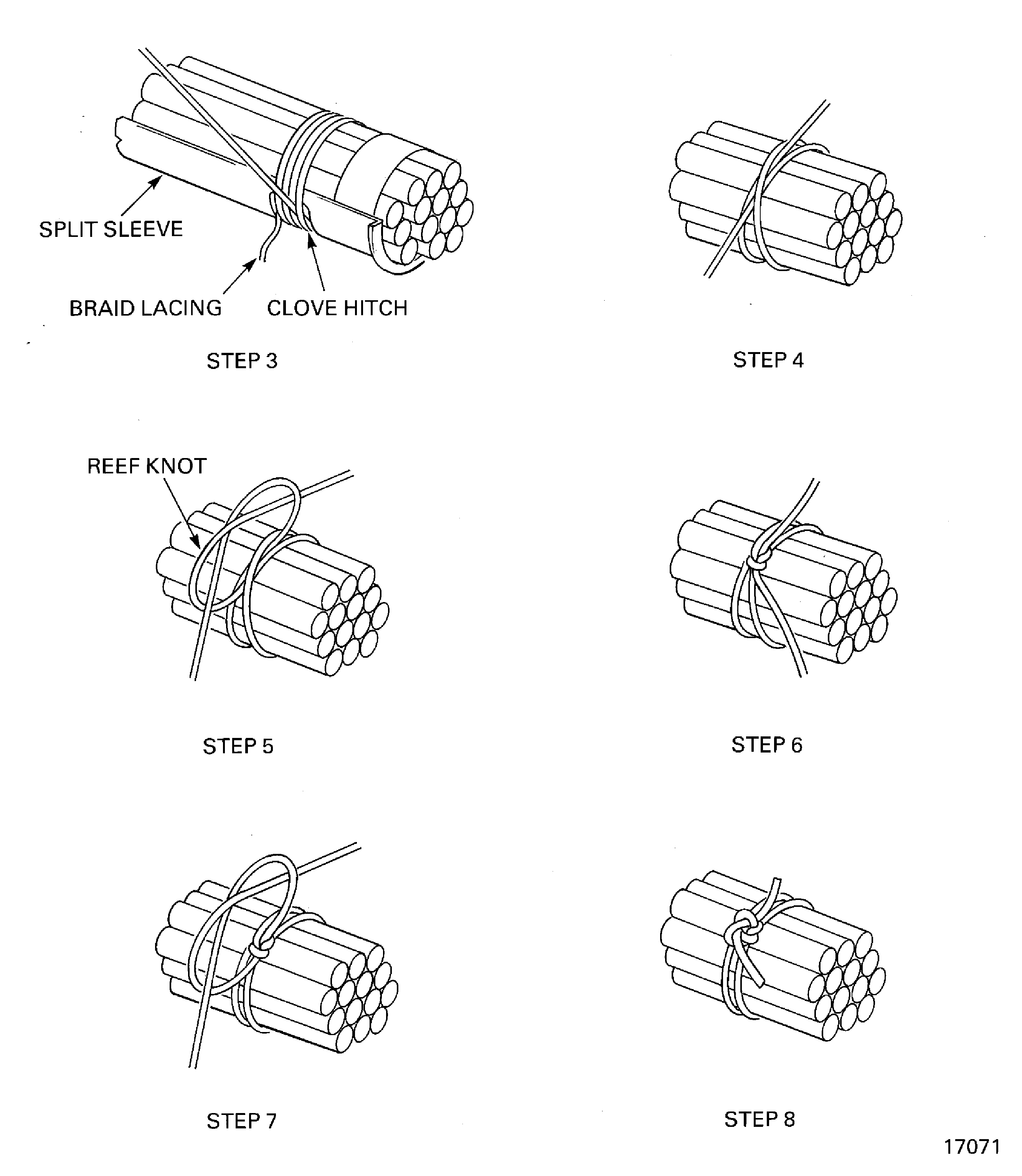 Steps 3 to 8: Tie and secure the sleeve half to the harness as shown in Figure.
