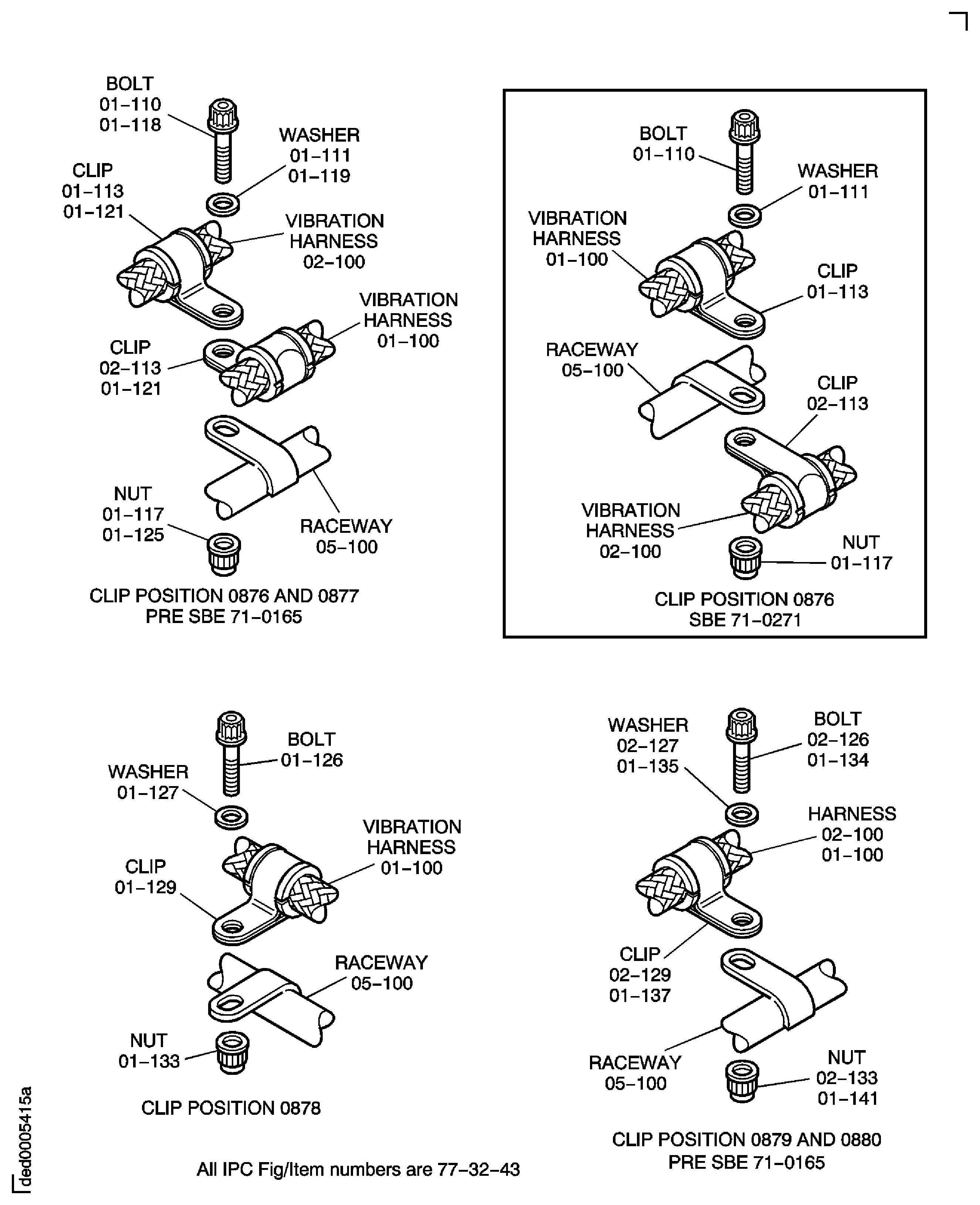 Pre SBE 71-0271: Install the bolts, the washers, the nuts and the clips at the clip positions 0876 to 0880.