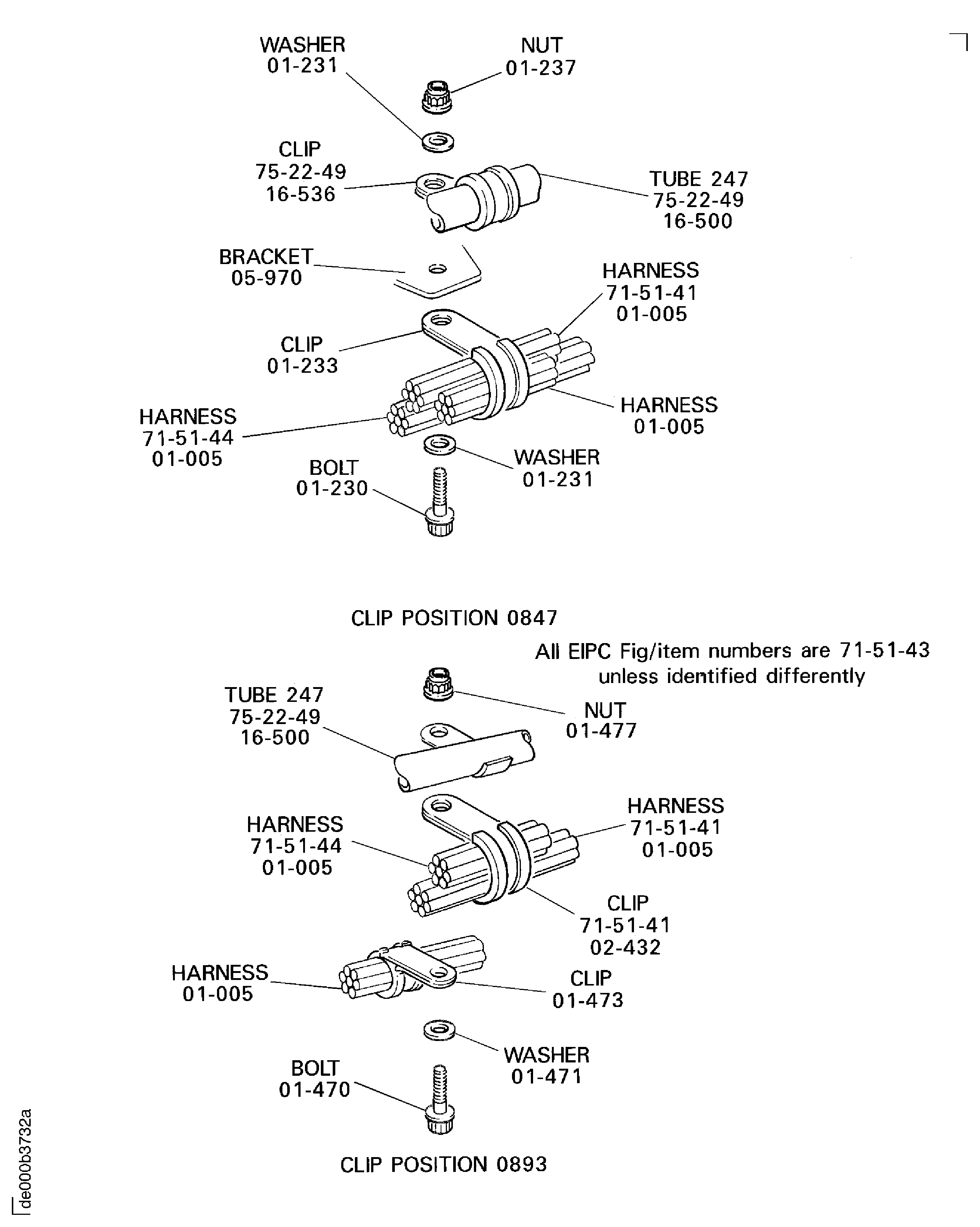 Install the datum clip position 0783, refer to Figure. Temporarily attach the harness at the datum clip position 0764 with CoMat 06-086 TIES.
