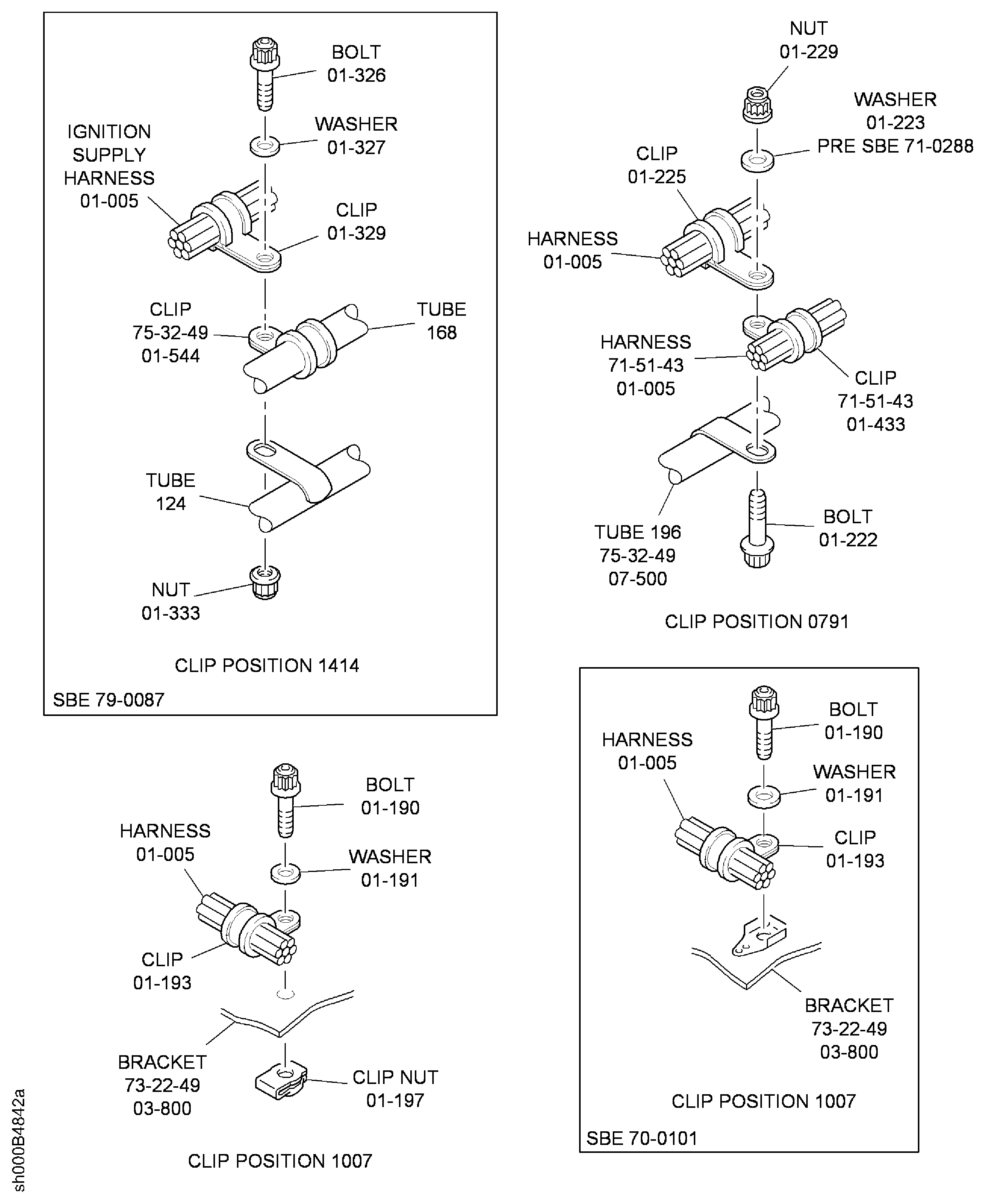 SBE 71-0271: Torque the nuts at the clip positions 0876 to 0880 and 1210 to 36 lbfin to 45 lbfin (4 Nm to 5 Nm).