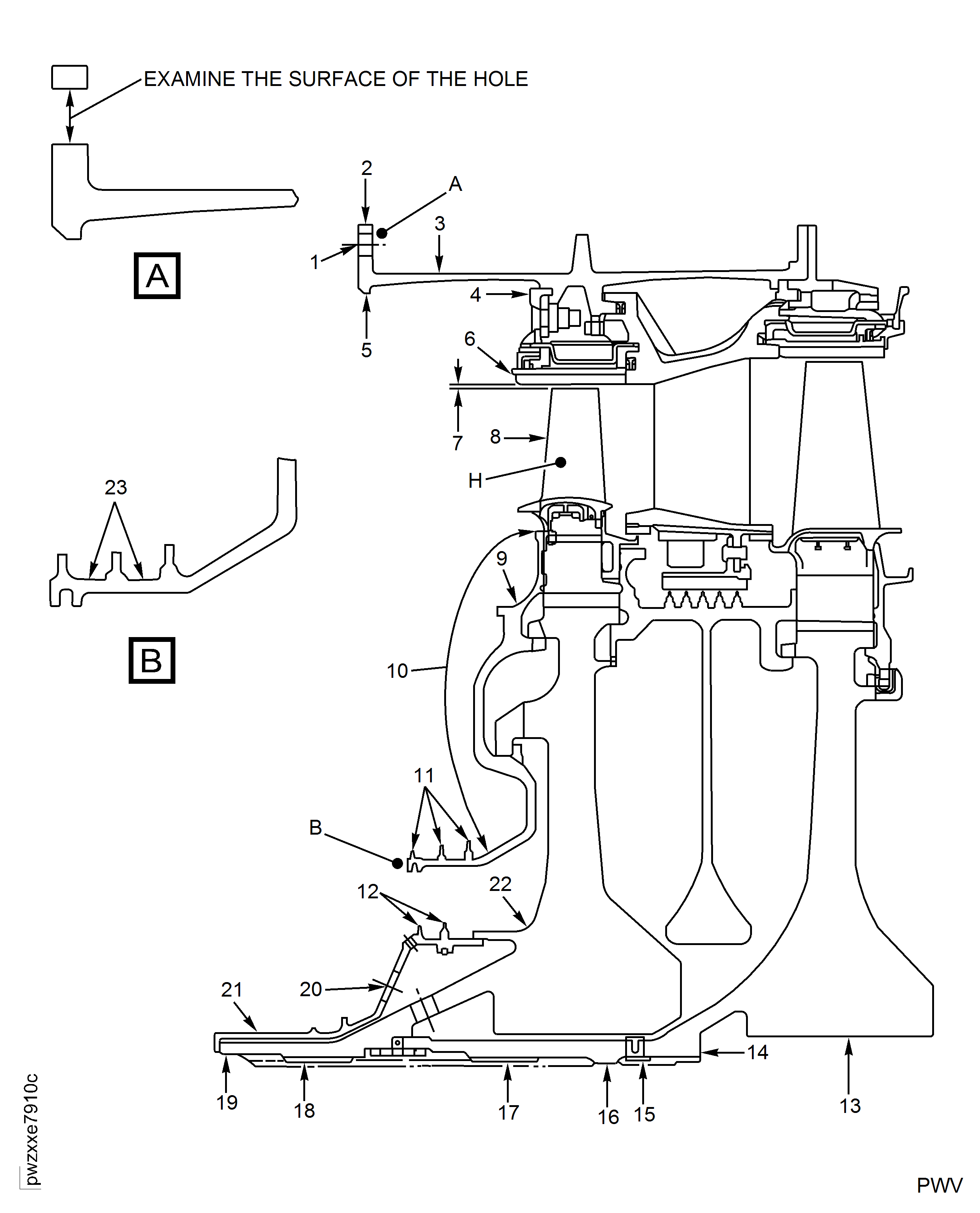 SUBTASK 72-00-45-220-249 Visually Inspect Area of HPT Stage 1 Hub between Inner and Outer Air Seal at Location 22