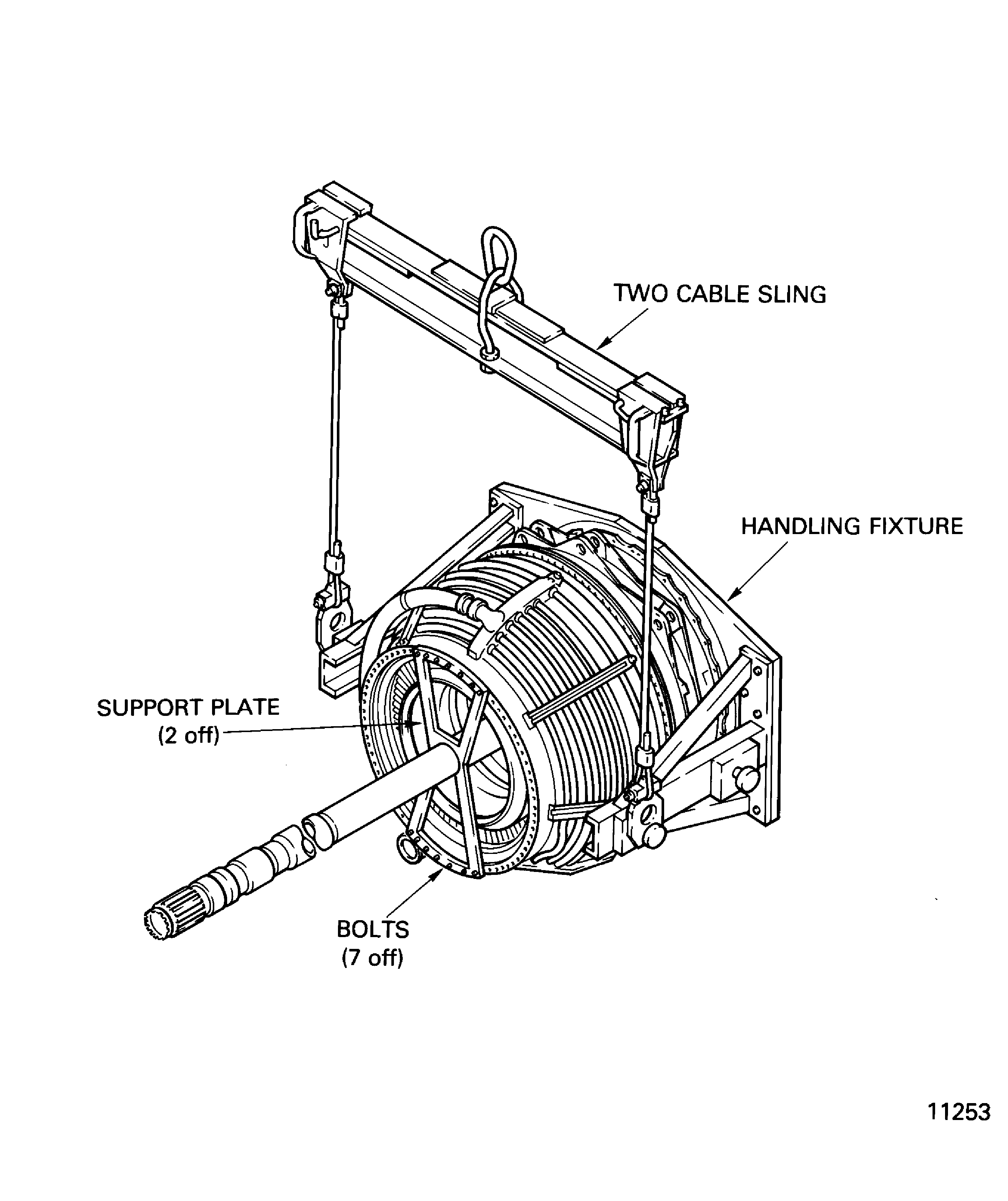 Install IAE 1F10052 Two cables sling 1 off to the rear spools of the IAE 1F10058 Handling fixture 1 off.