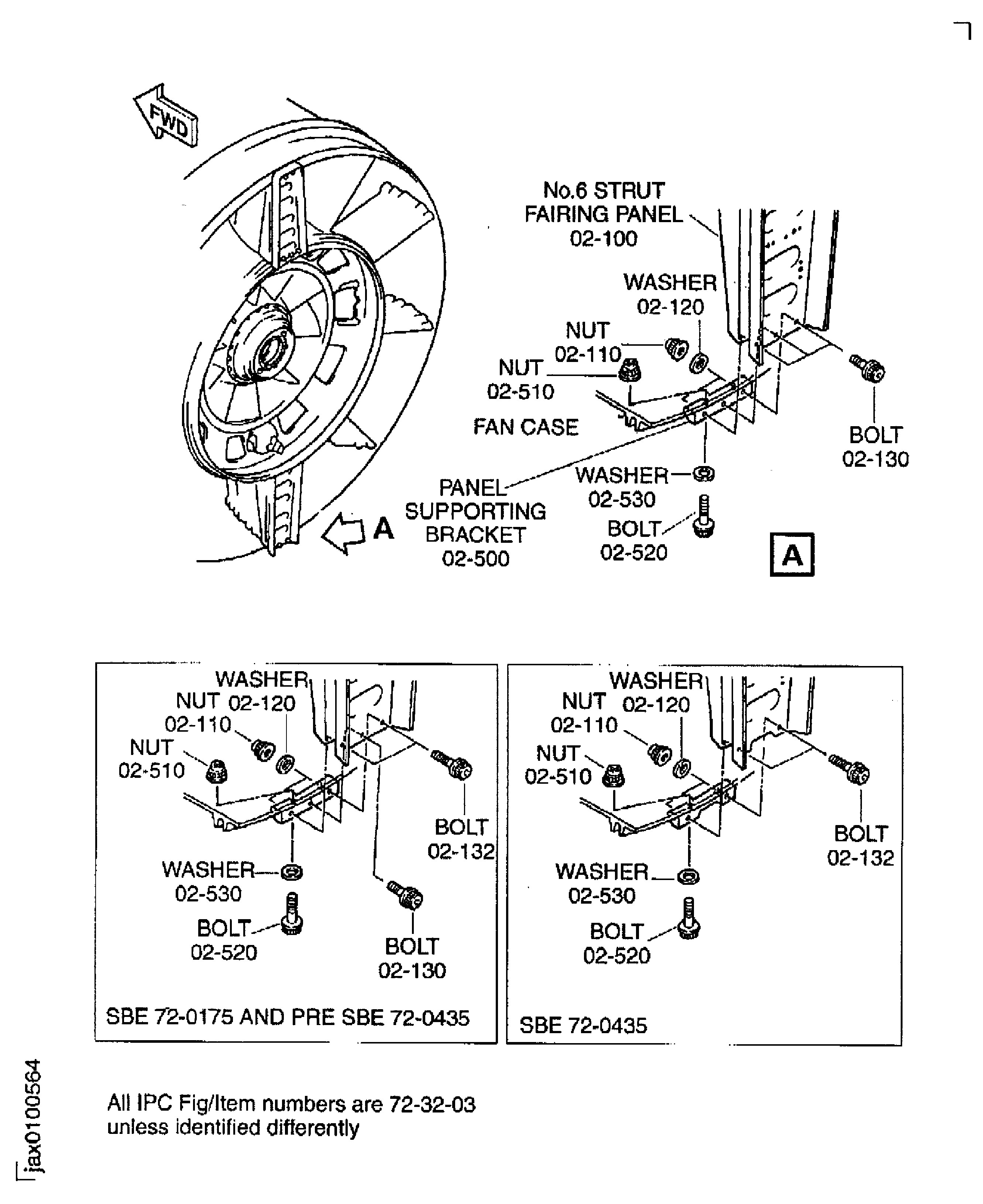 SUBTASK 72-32-00-030-220 Remove the No.6 Strut Fairing Panel and the Panel Supporting Bracket from the Fan Frame and the Fan Case (Pre SBE 72-0435 and SBE 72-0435)