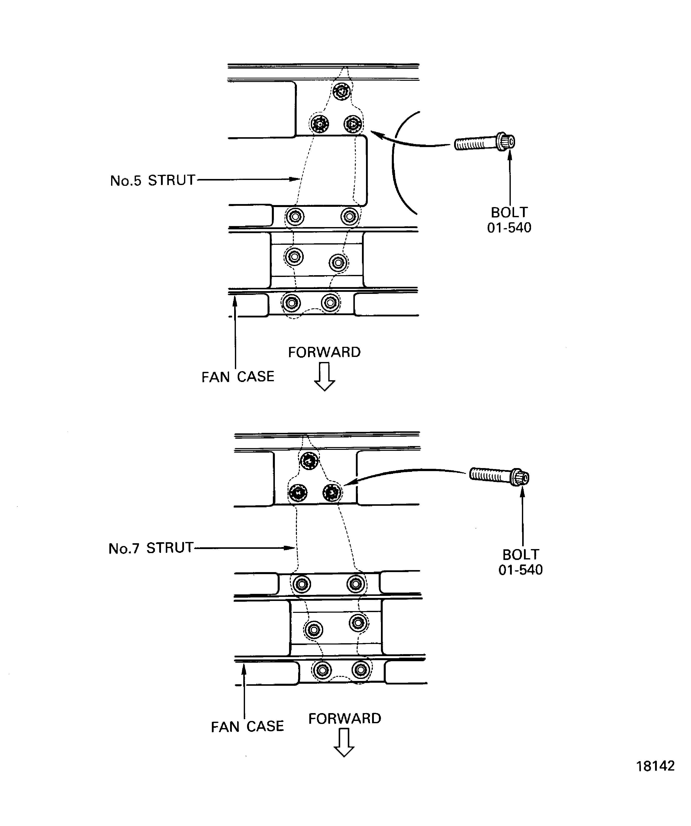 Remove the six bolts from the threaded holes in the No. 5 and No. 7 struts