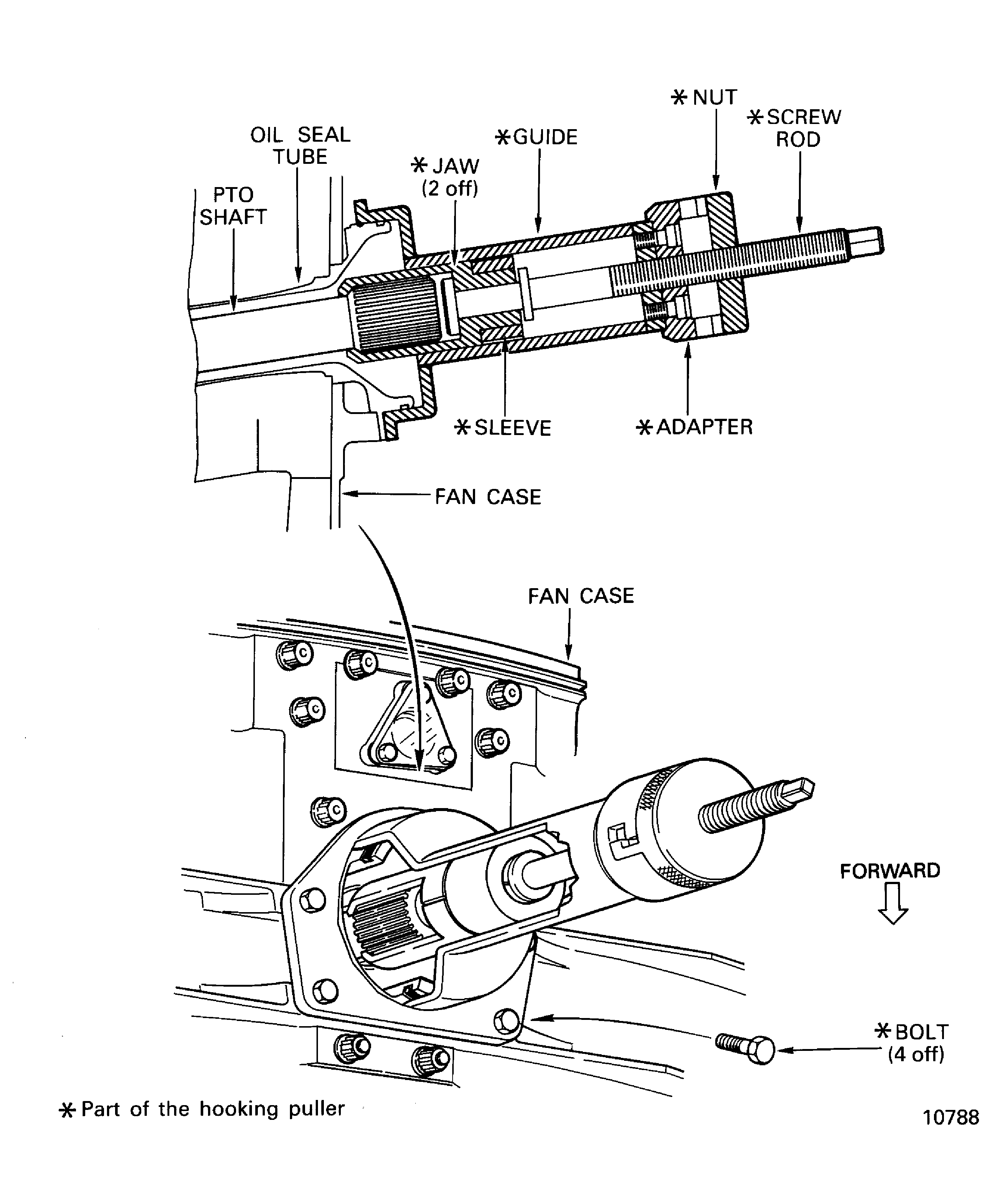 Install the three puller bolts (part of IAE 1J12188 Puller bolt 1 off) in to the three threaded holes in the PTO sealing plate.