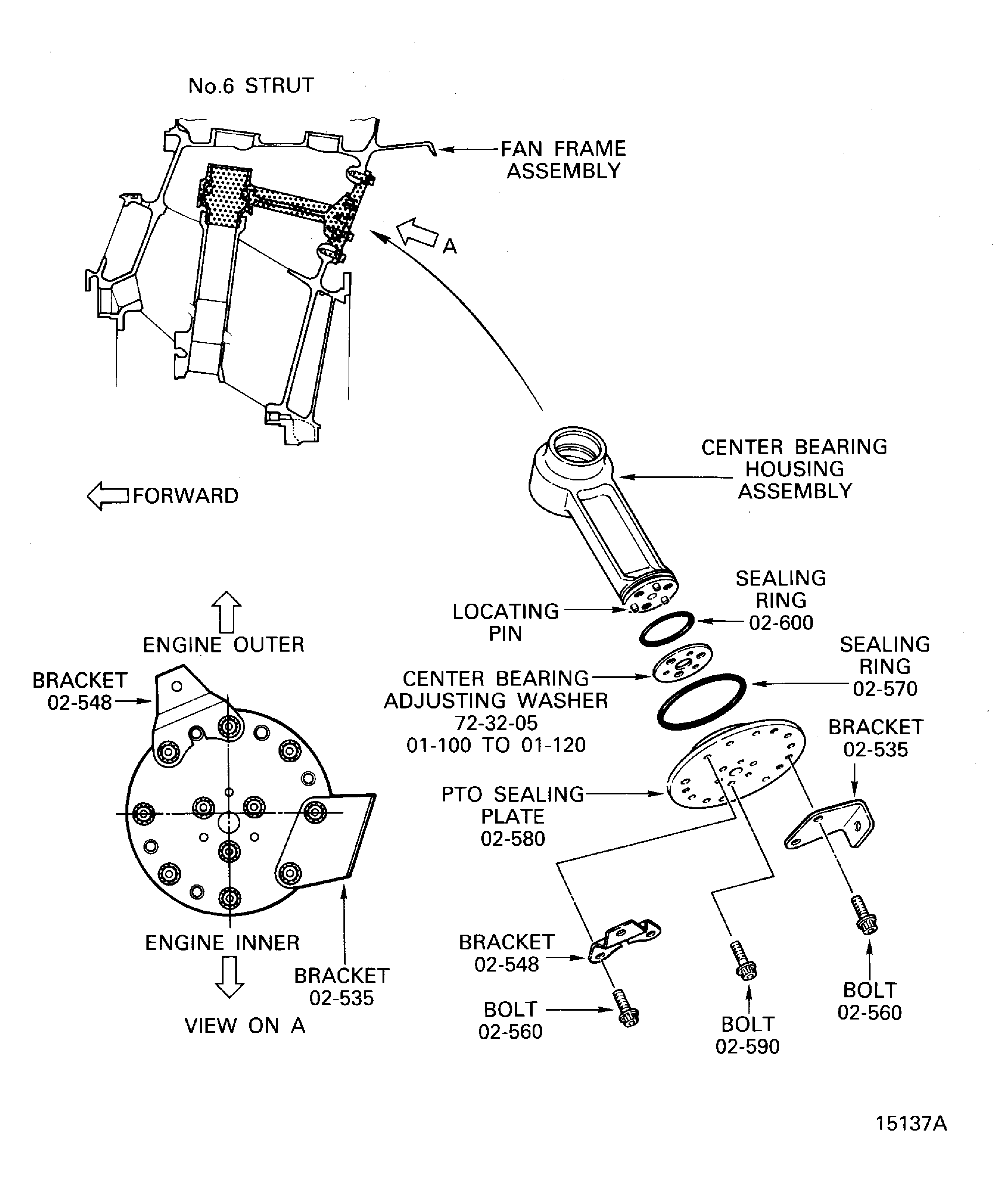 SUBTASK 72-32-00-030-177 Remove the Brackets, the PTO Sealing Plate, the Adjusting Washer and the Center Bearing Housing Assembly from the Fan Frame Assembly