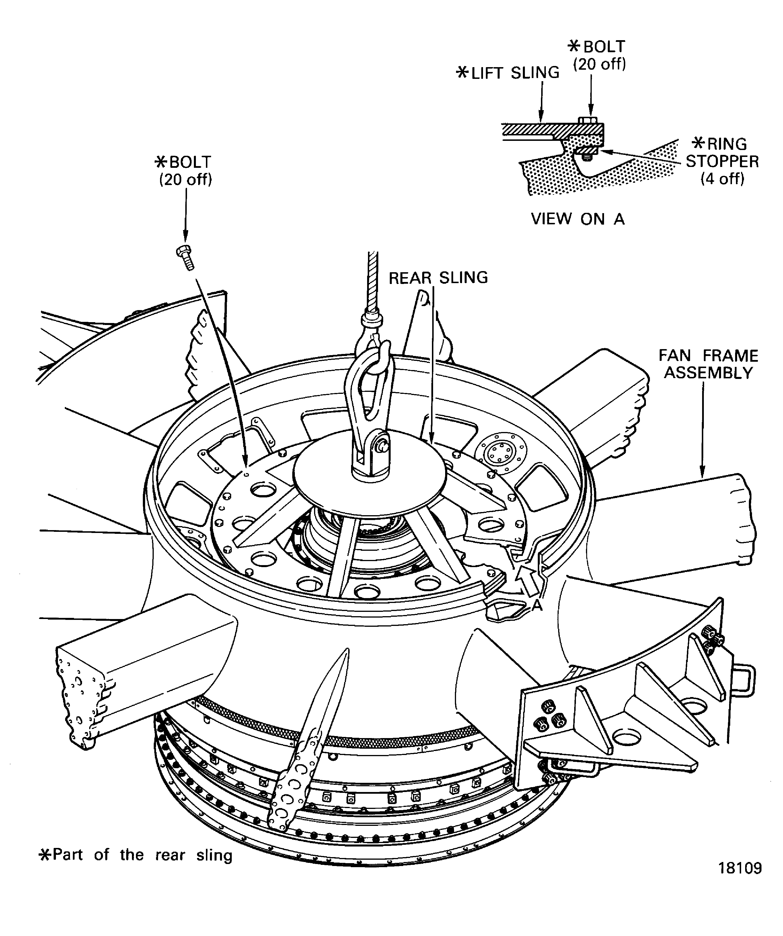 Figure: Install the rear sling to the fan frame and fan case assembly