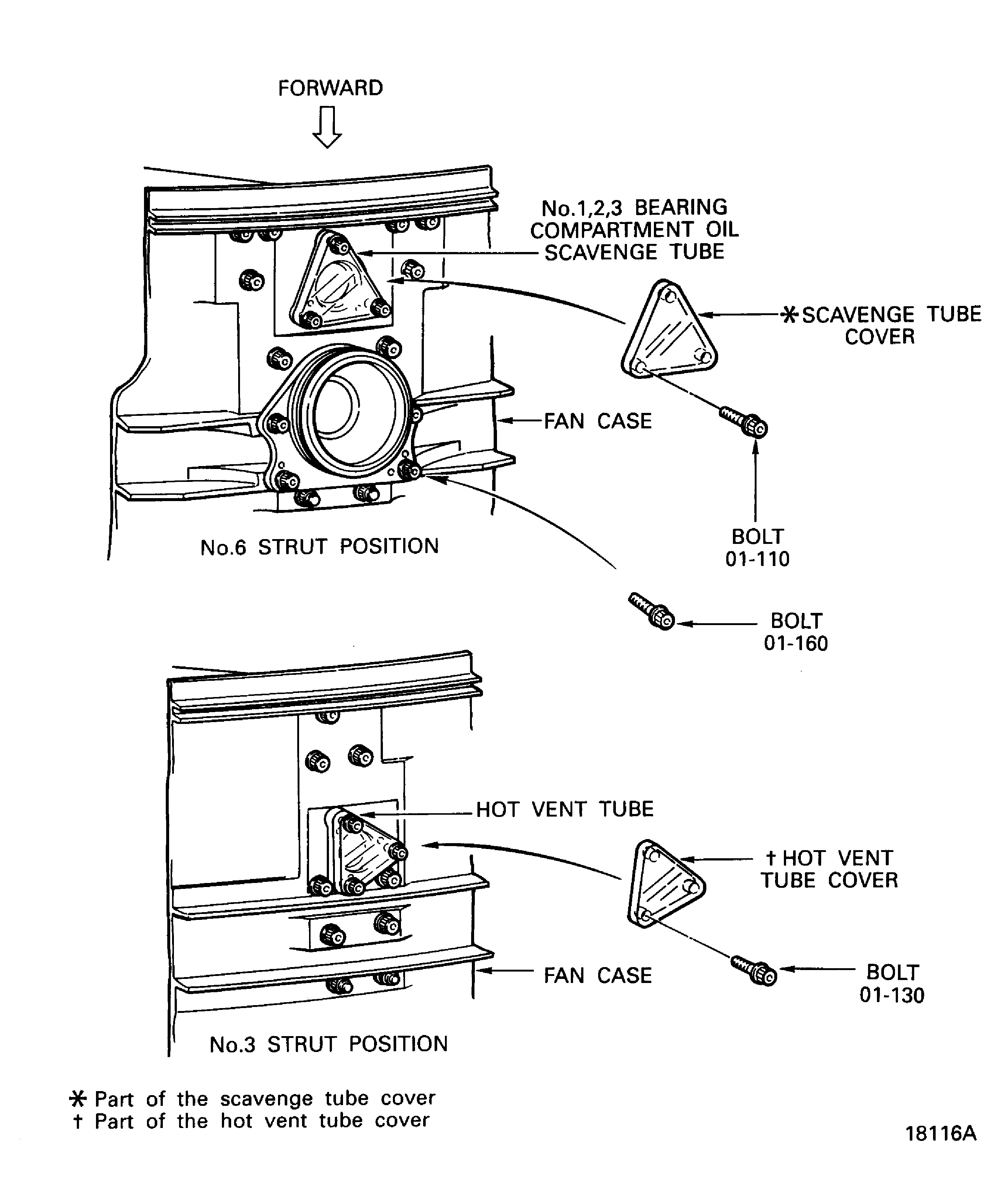 Remove the scavenge tube and the hot vent tube from the No. 6 and No. 3 struts