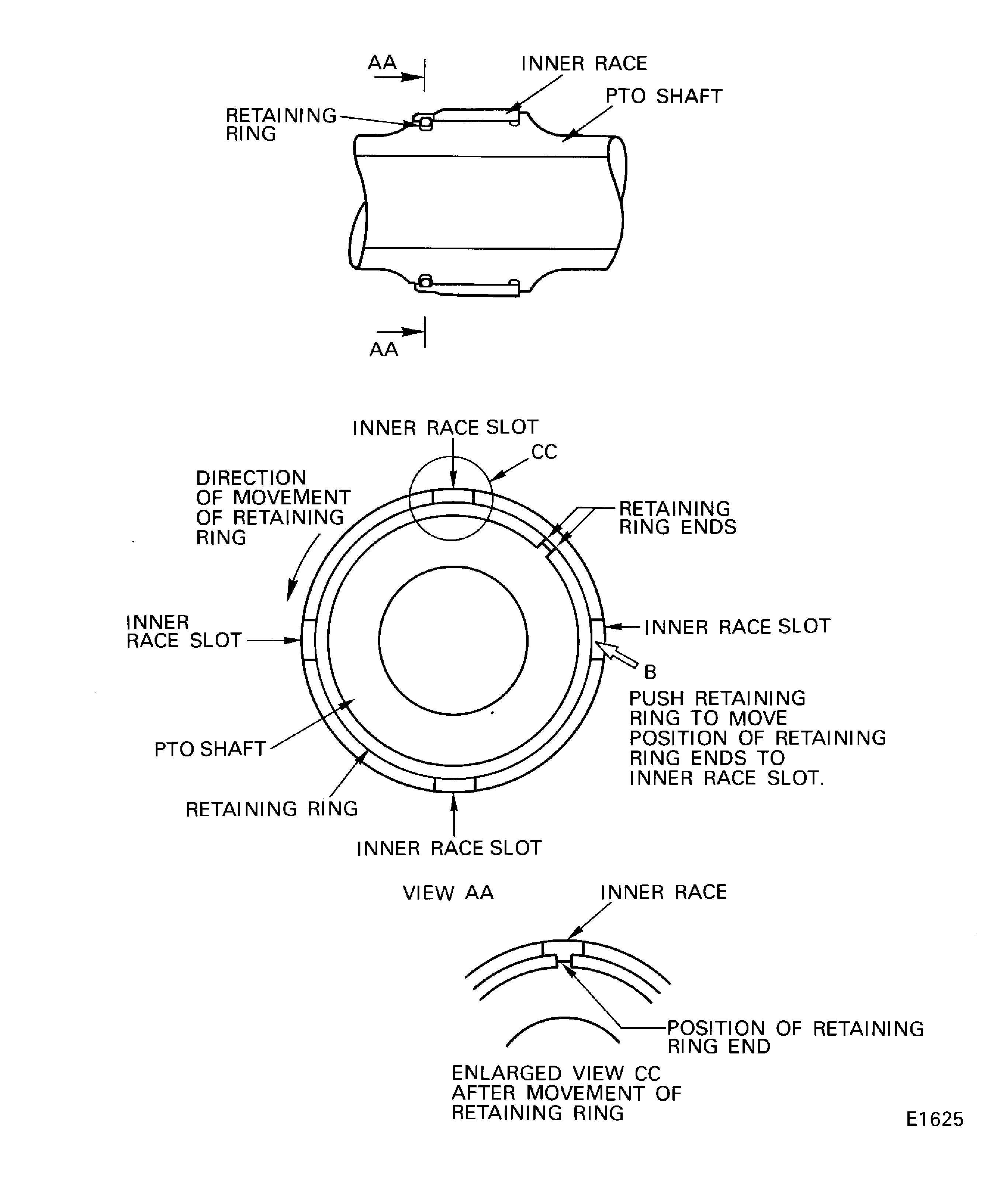 SBE 72-0214: Provide a new PTO shaft bearing inner race and retaining ring
