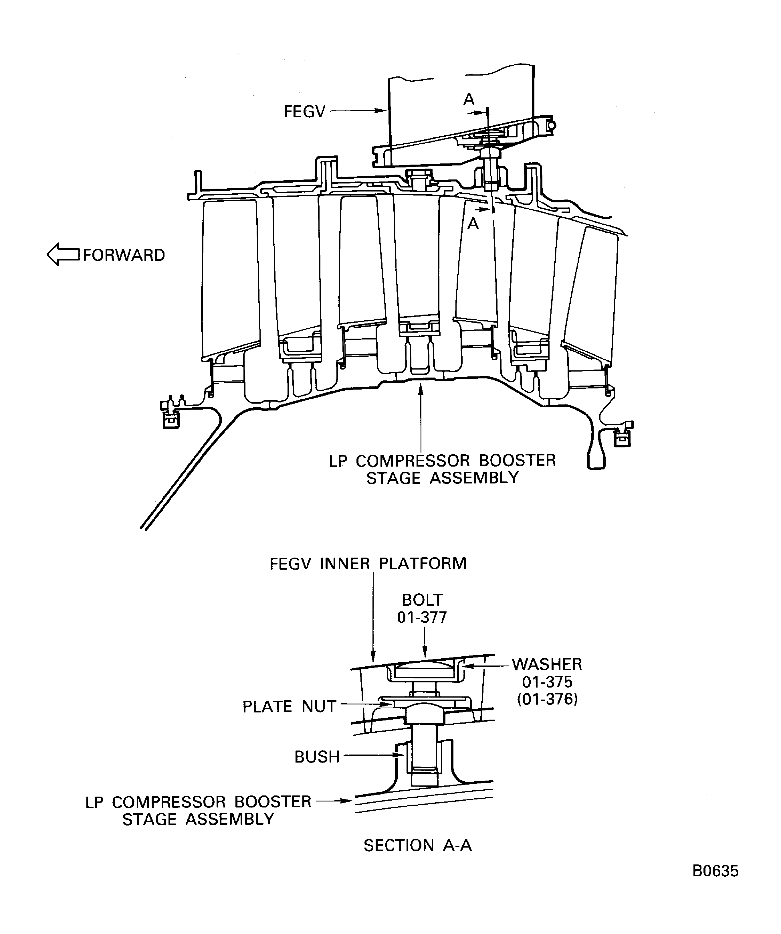 REMOVE THE FEGVS BEFORE YOU REMOVE THE LP COMPRESSOR BOOSTER STAGE ASSEMBLY. THE REAR CASE OF THE LP COMPRESSOR BOOSTER STAGE ASSEMBLY HITS THE FEGVS AND CAN CAUSE DAMAGE TO THE LP COMPRESSOR BOOSTER ASSEMBLY AND THE FEGVS.Remove the FEGVs if they are installed. Refer to TASK 72-32-00-030-004-C00 (DISASSEMBLY-004, CONFIG-003).