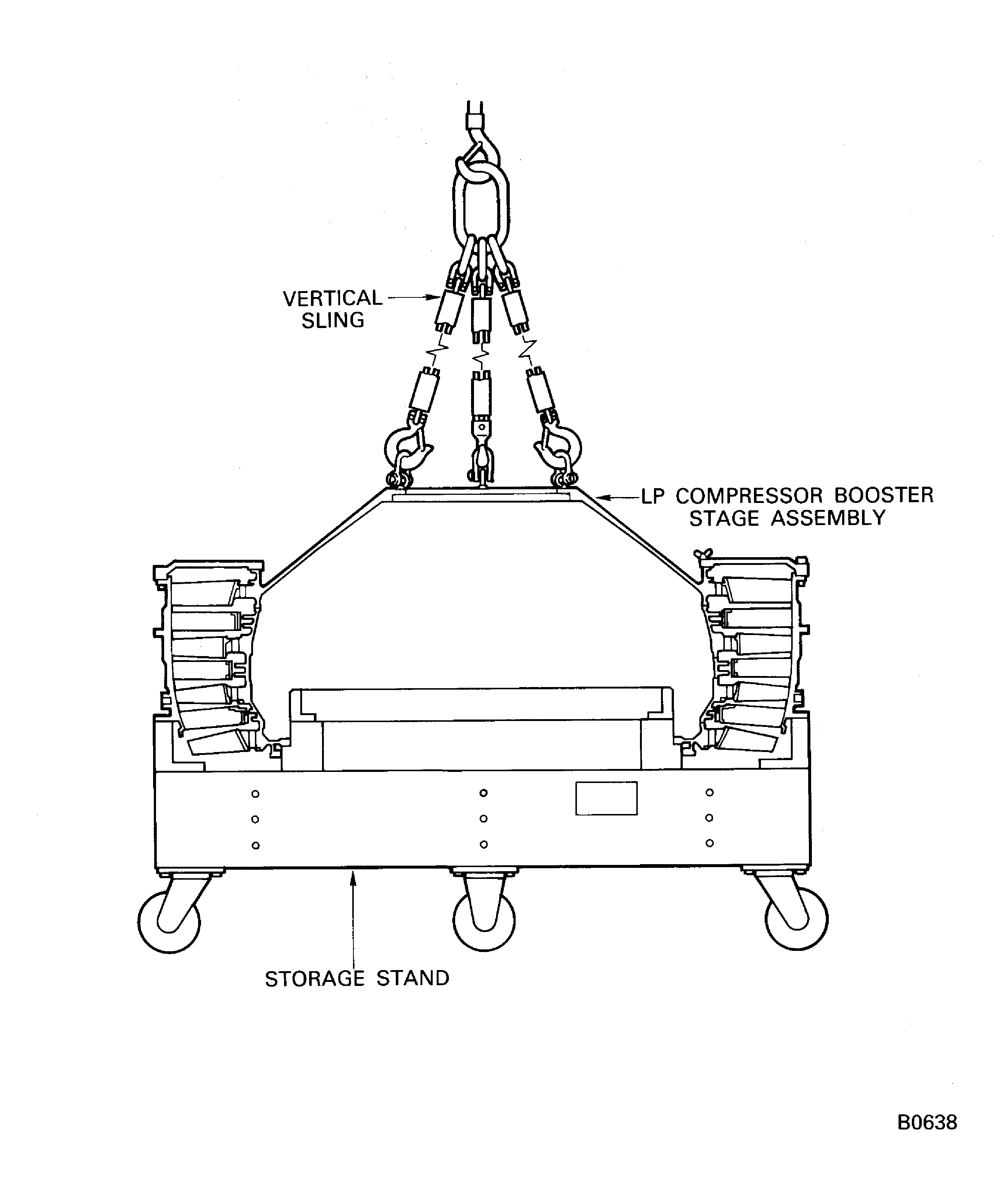 Install the LP compressor booster stage assembly on to the storage stand