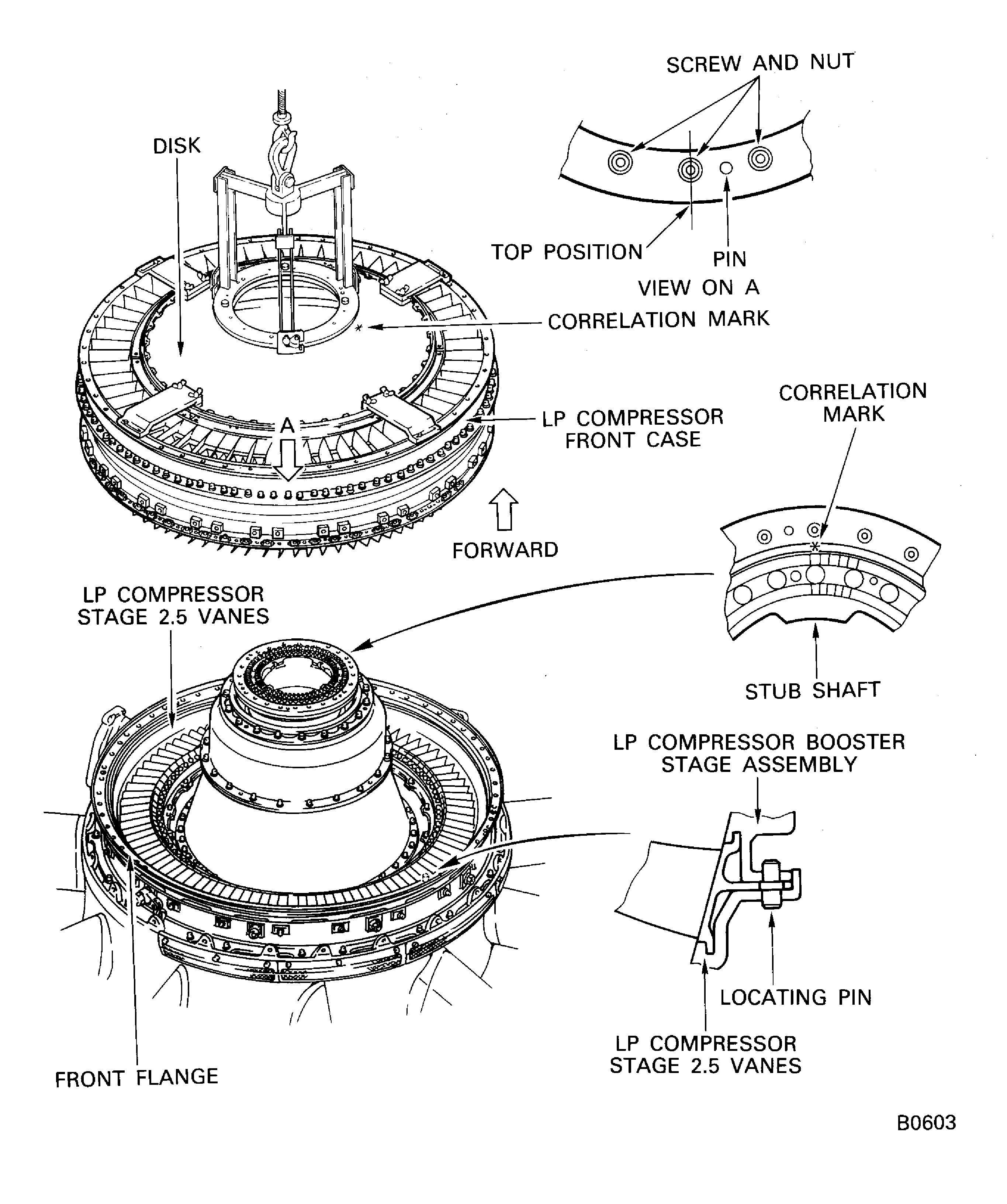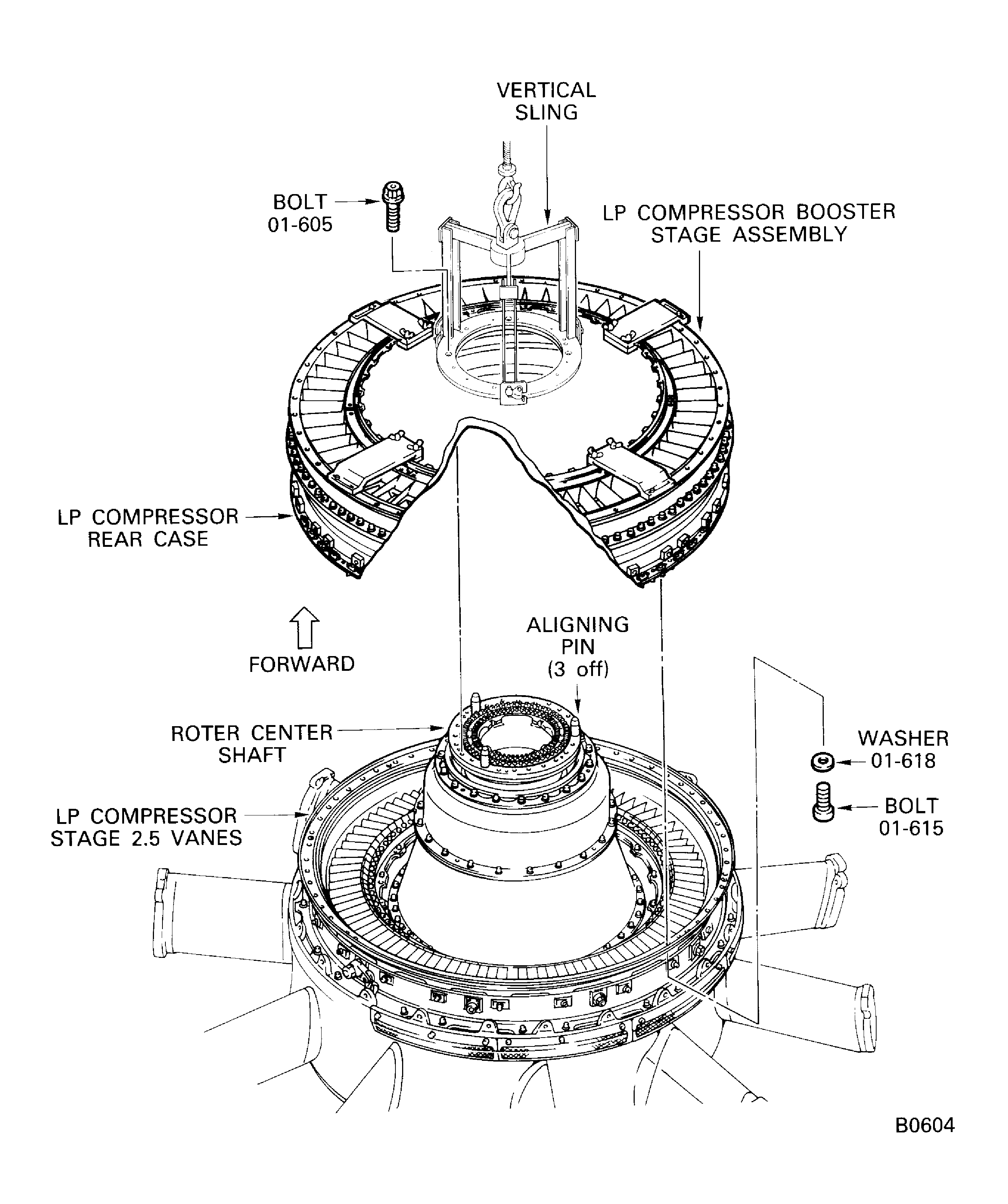 SUBTASK 72-32-00-430-204 Install the LP Compressor Booster Stage Assembly (LPC Assembly) to the Rotor Center Shaft and the LP Compressor Stage 2.5 Vanes (Stage 2.5 Vane)