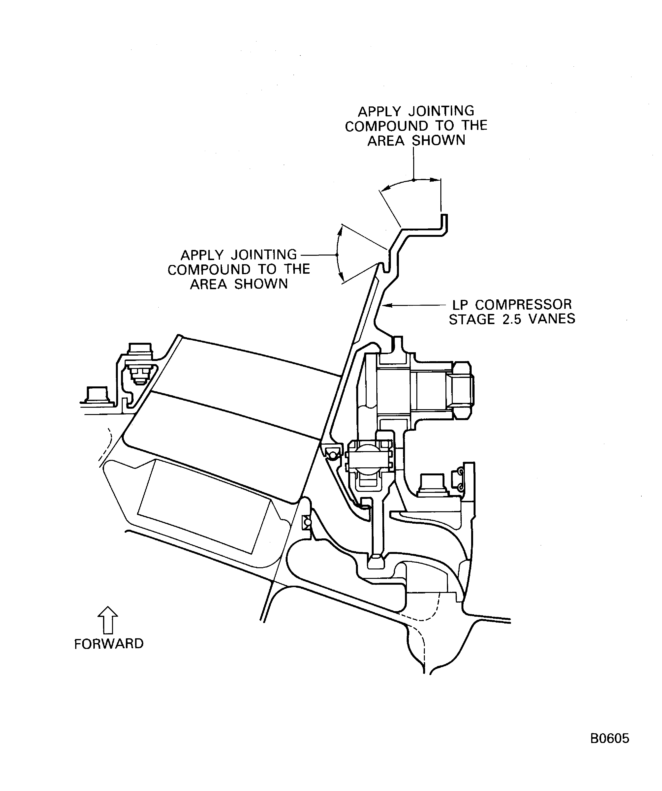 Figure: Apply Jointing Compound to the Mating Faces on the LP Compressor Stage 2.5 Vanes