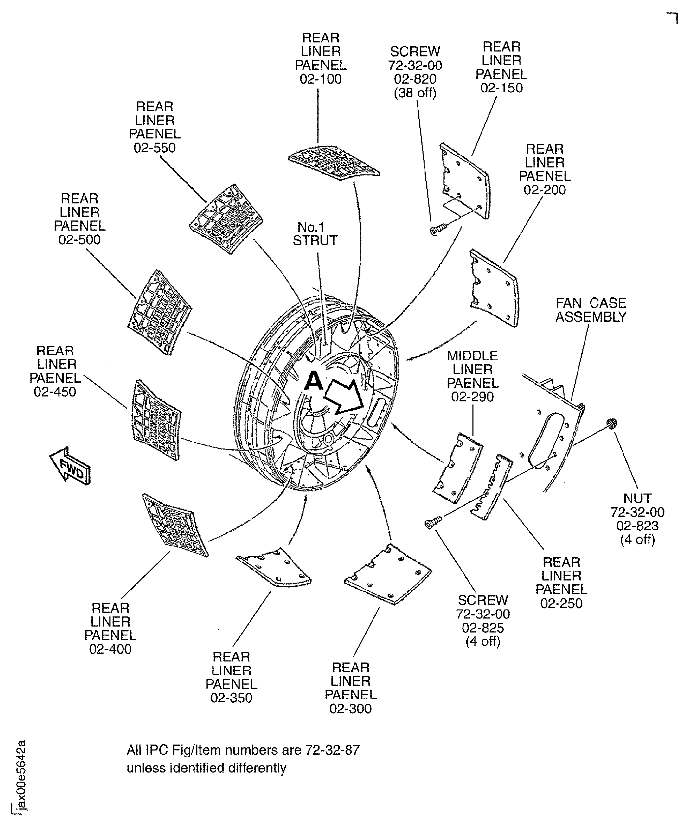 Install the 10 rear liner panels Fan Case Liner Panels And Related Parts (72-32-87, 02-100), Fan Case Liner Panels And Related Parts (72-32-87, 02-150), Fan Case Liner Panels And Related Parts (72-32-87, 02-200), Fan Case Liner Panels And Related Parts (72-32-87, 02-250), Fan Case Liner Panels And Related Parts (72-32-87, 02-300), Fan Case Liner Panels And Related Parts (72-32-87, 02-350), Fan Case Liner Panels And Related Parts (72-32-87, 02-400), Fan Case Liner Panels And Related Parts (72-32-87, 02-450), Fan Case Liner Panels And Related Parts (72-32-87, 02-500) and Fan Case Liner Panels And Related Parts (72-32-87, 02-550) on to the fan case.