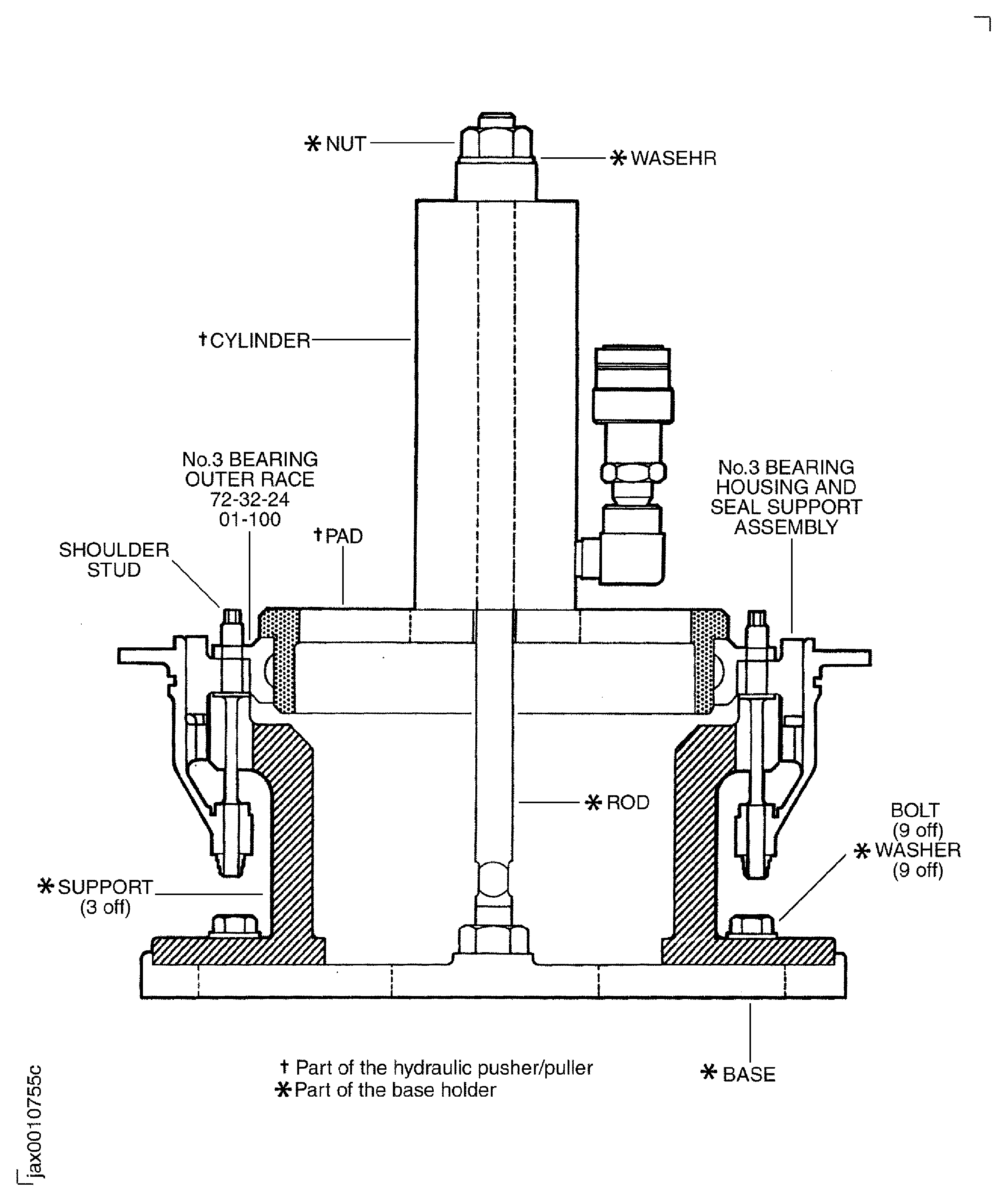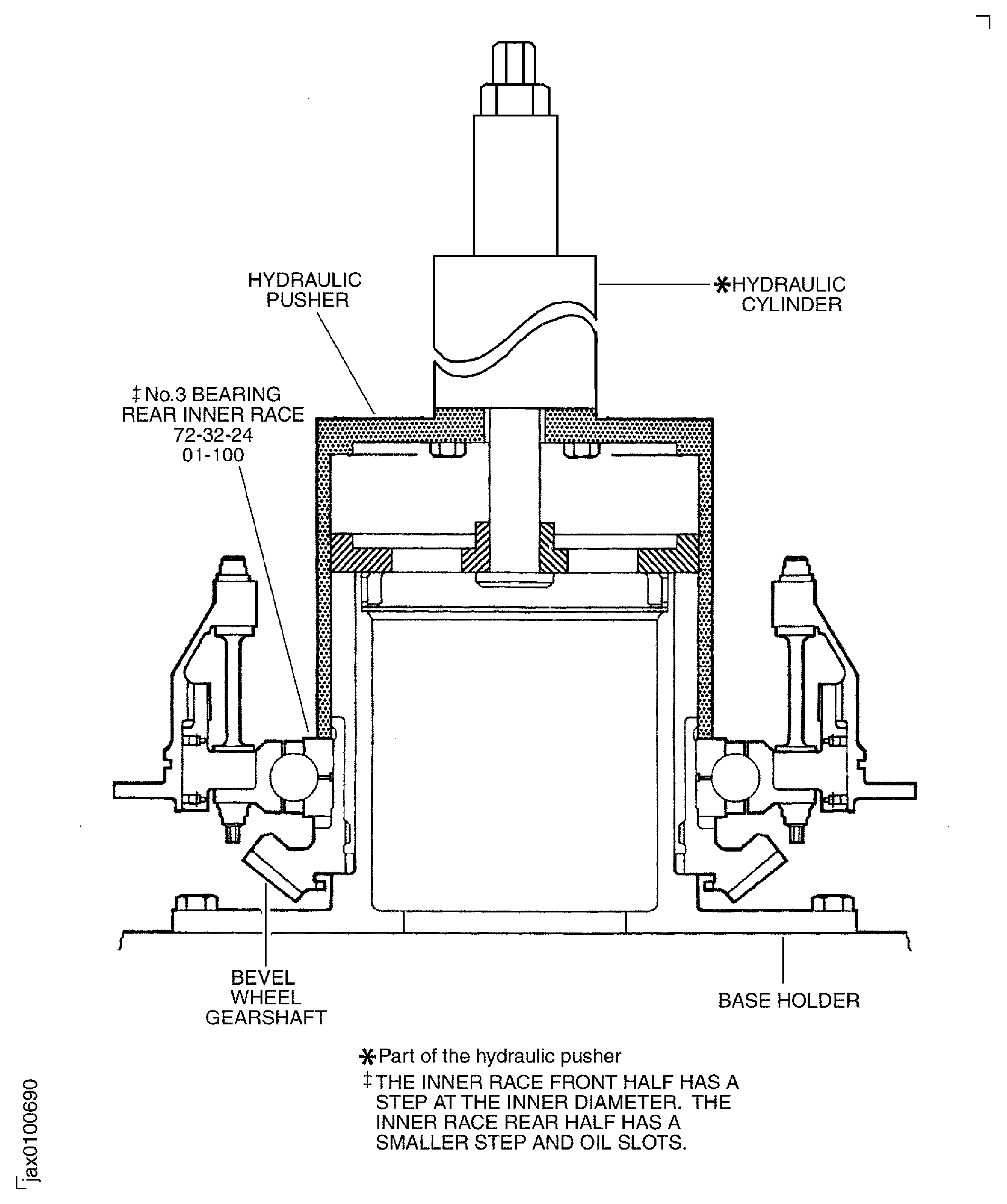 Install IAE 1J12380 Hydraulic pusher 1 off on the HP Compressor front shaft and the No. 3 Bearing, Gearshaft, Support and Seal Assembly.