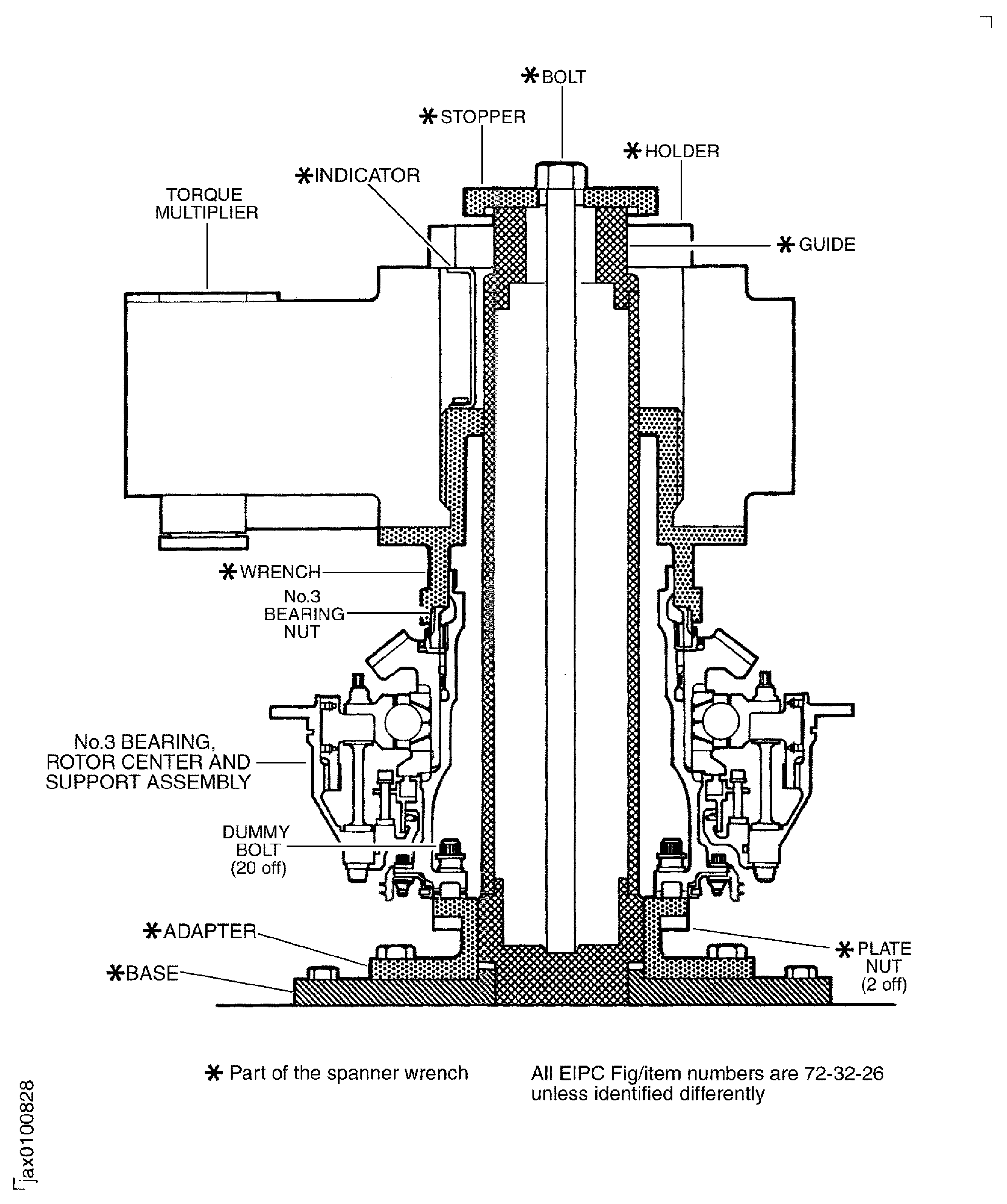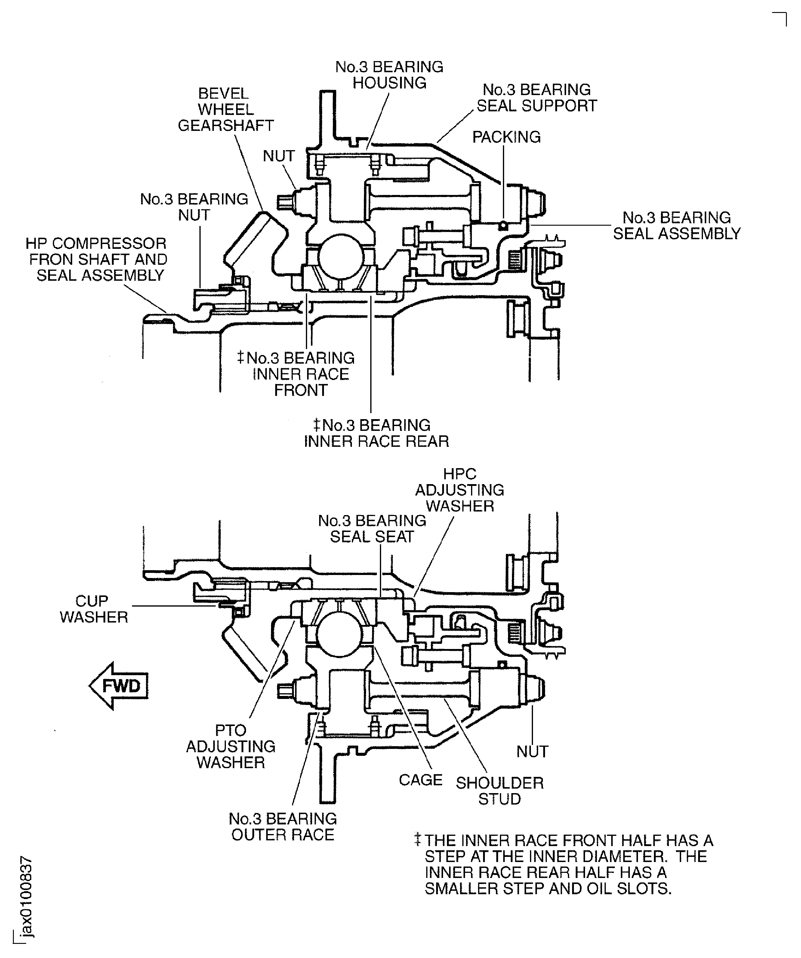 Refer to Figure for a sectional view of a No. 3 Bearing Rotor Center and Support Assembly.