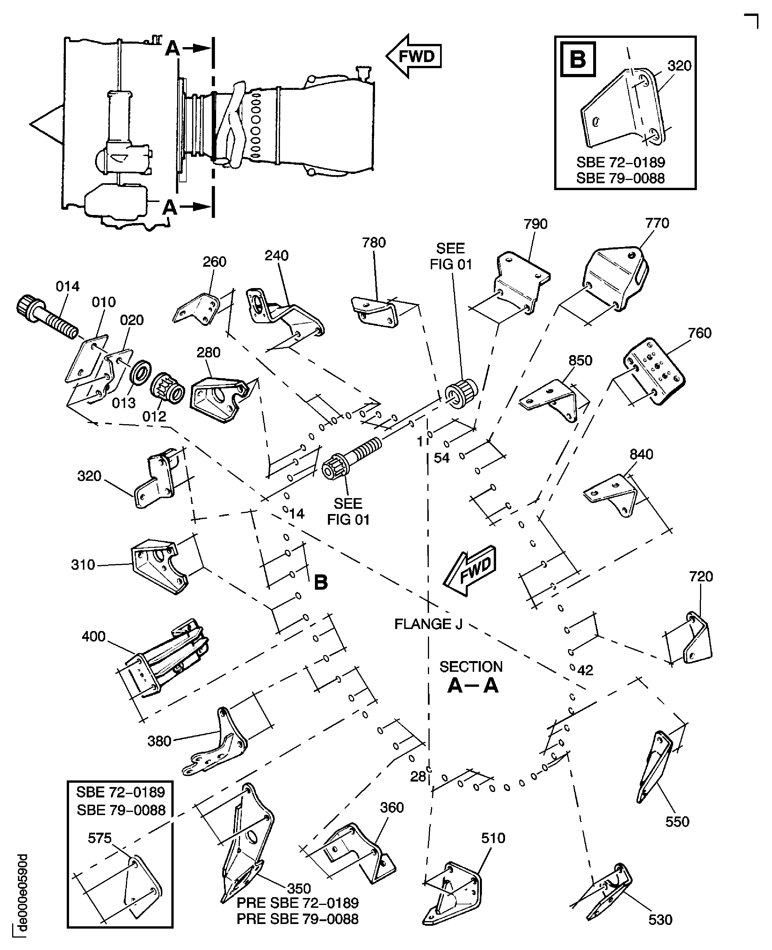 | 550 | 6A4670 | • BRACKET, ASSEMBLY OF PRE SBE70-0568 | aa-ae/01 | 1 |