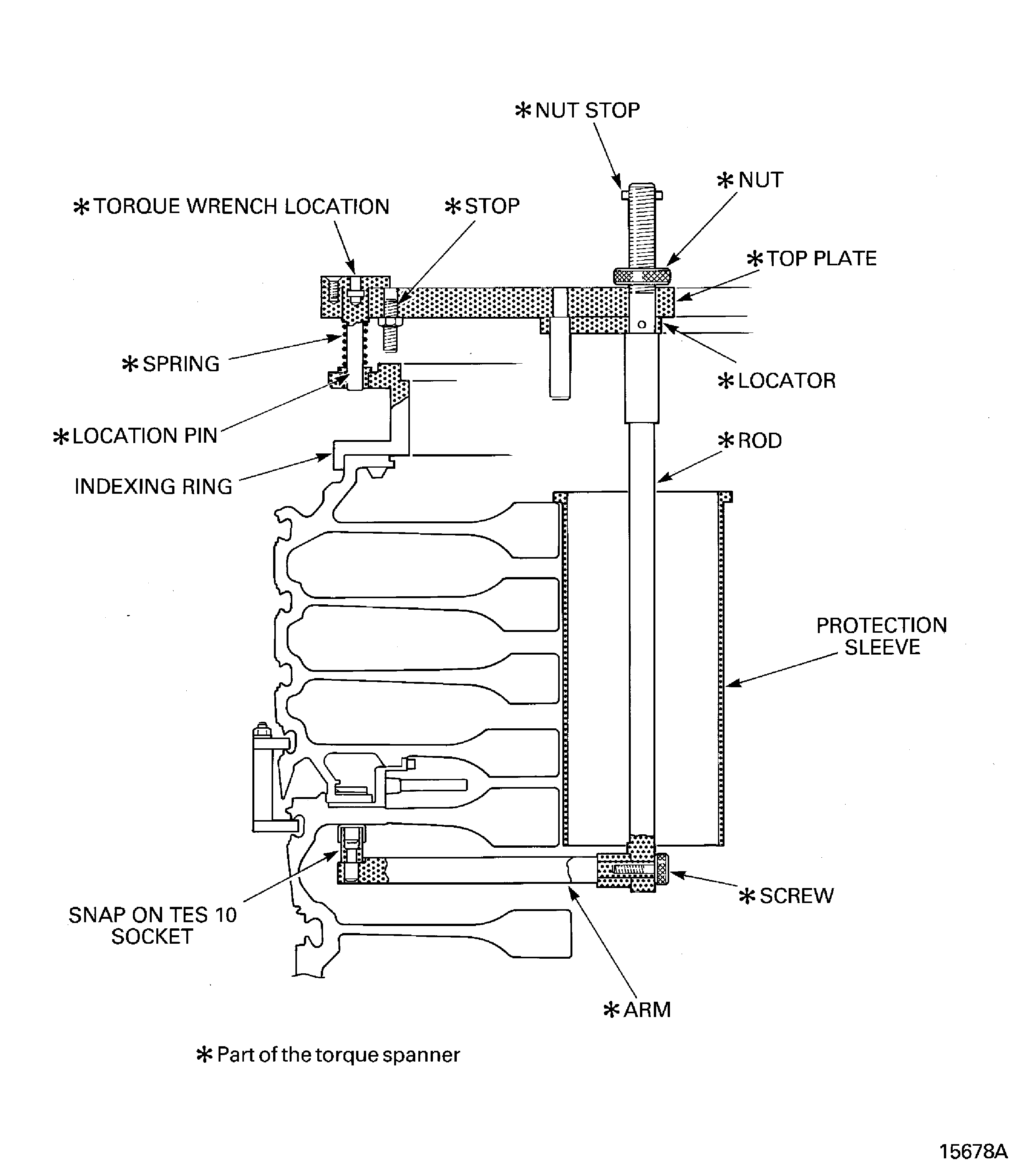 Assemble the IAE 1R19008 Puller 1 off with the two split rings located on the front face of the shaft forward flange. Make sure the tufnol pads are correctly located on the rear face of the stage 12 disk.