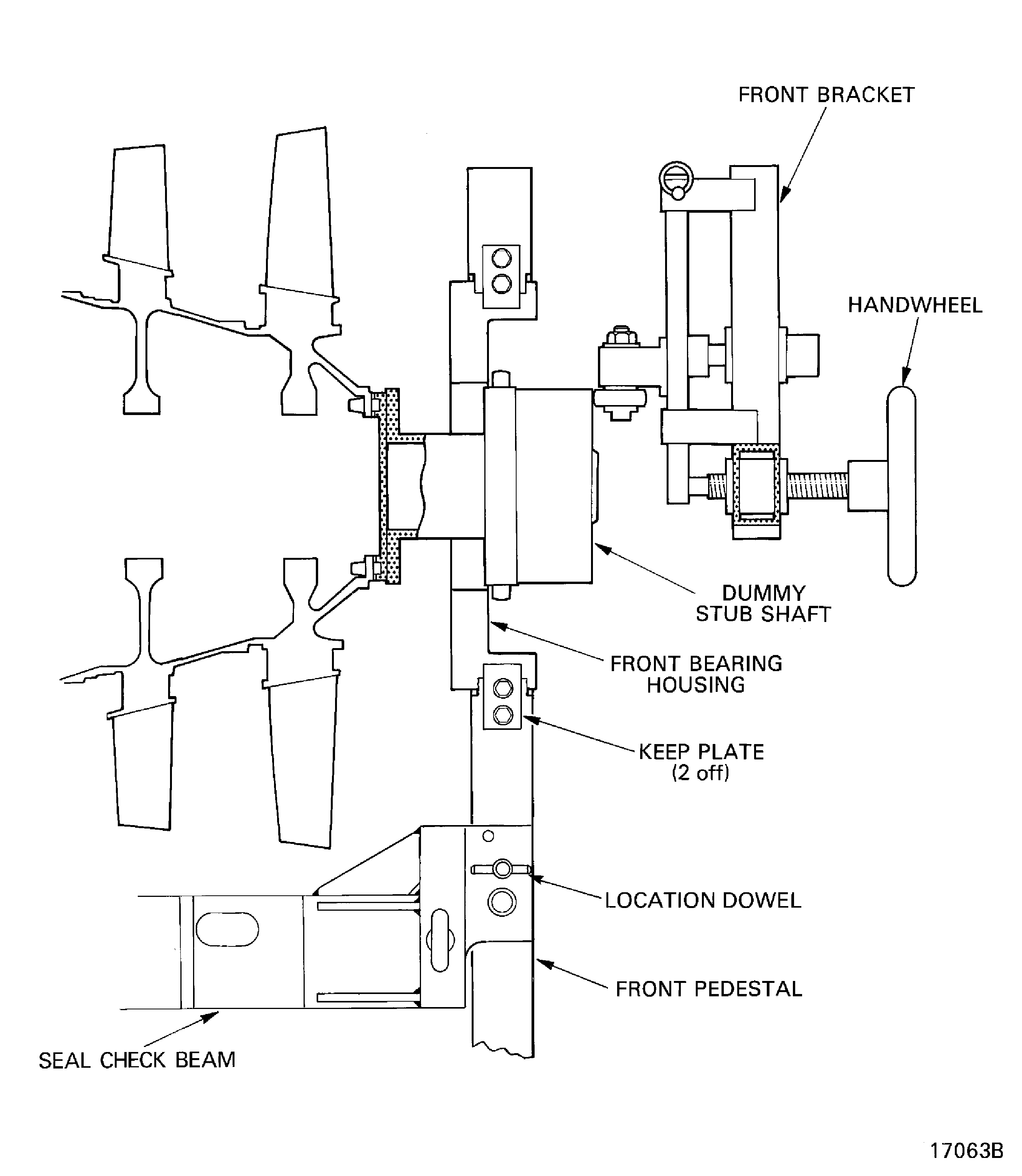 DO NOT LET THE COMPRESSOR ROTOR ASSEMBLY HIT THE TIP CHECK FIXTURE. IF THE COMPRESSOR ROTOR ASSEMBLY HITS THE TIP CHECK FIXTURE YOU CAN CAUSE DAMAGE TO THE EQUIPMENT/MATERIALS.Install the compressor rotor assembly in to the IAE 1R18451 Tip check fixture 1 off. Make sure the dummy stub shaft is correctly located in the front bearing housing.