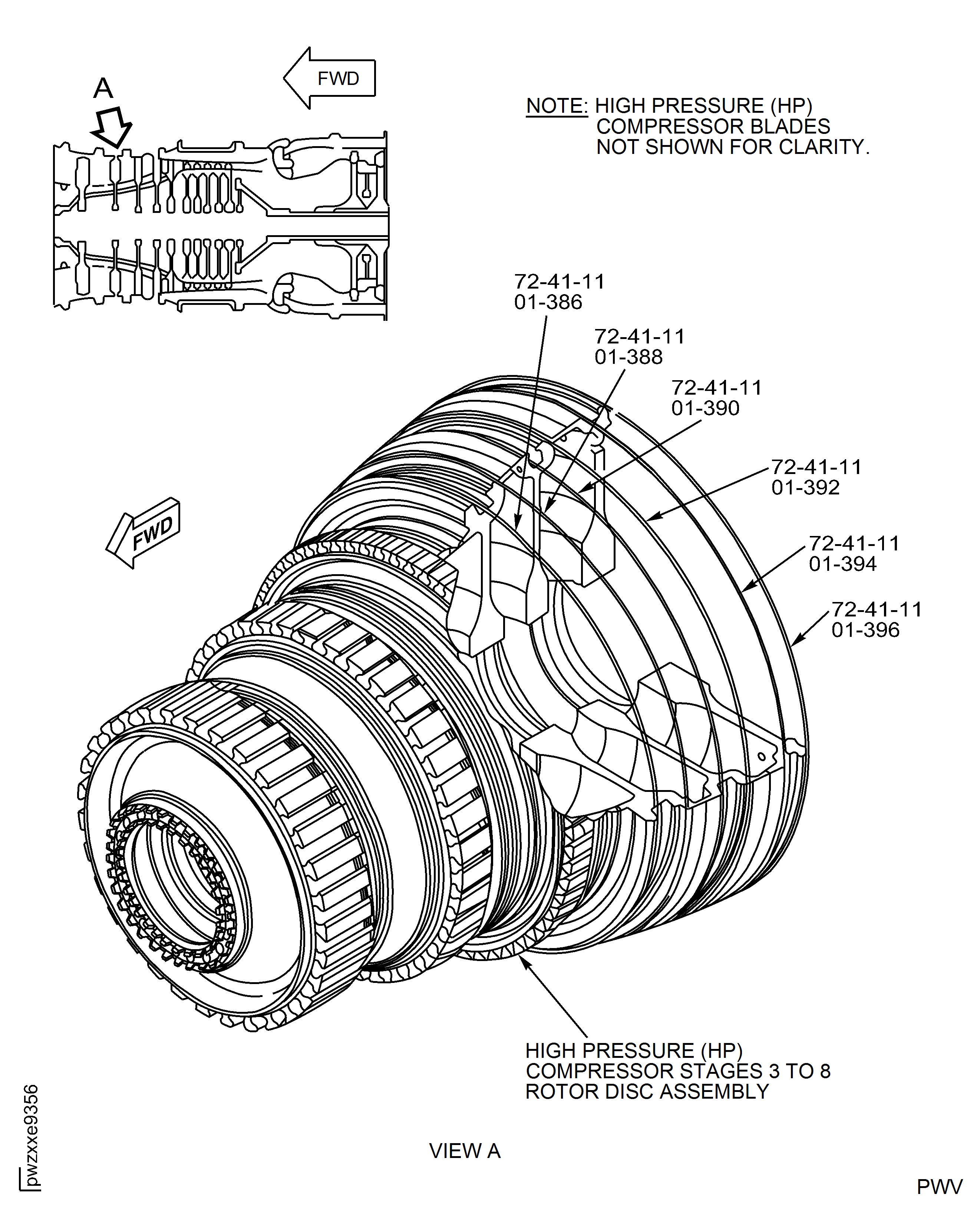 SUBTASK 72-41-10-040-111 Remove the Stage 9 to 12 Disks and Vortex Reducer Ring from the Stage 3 to 8 Disks