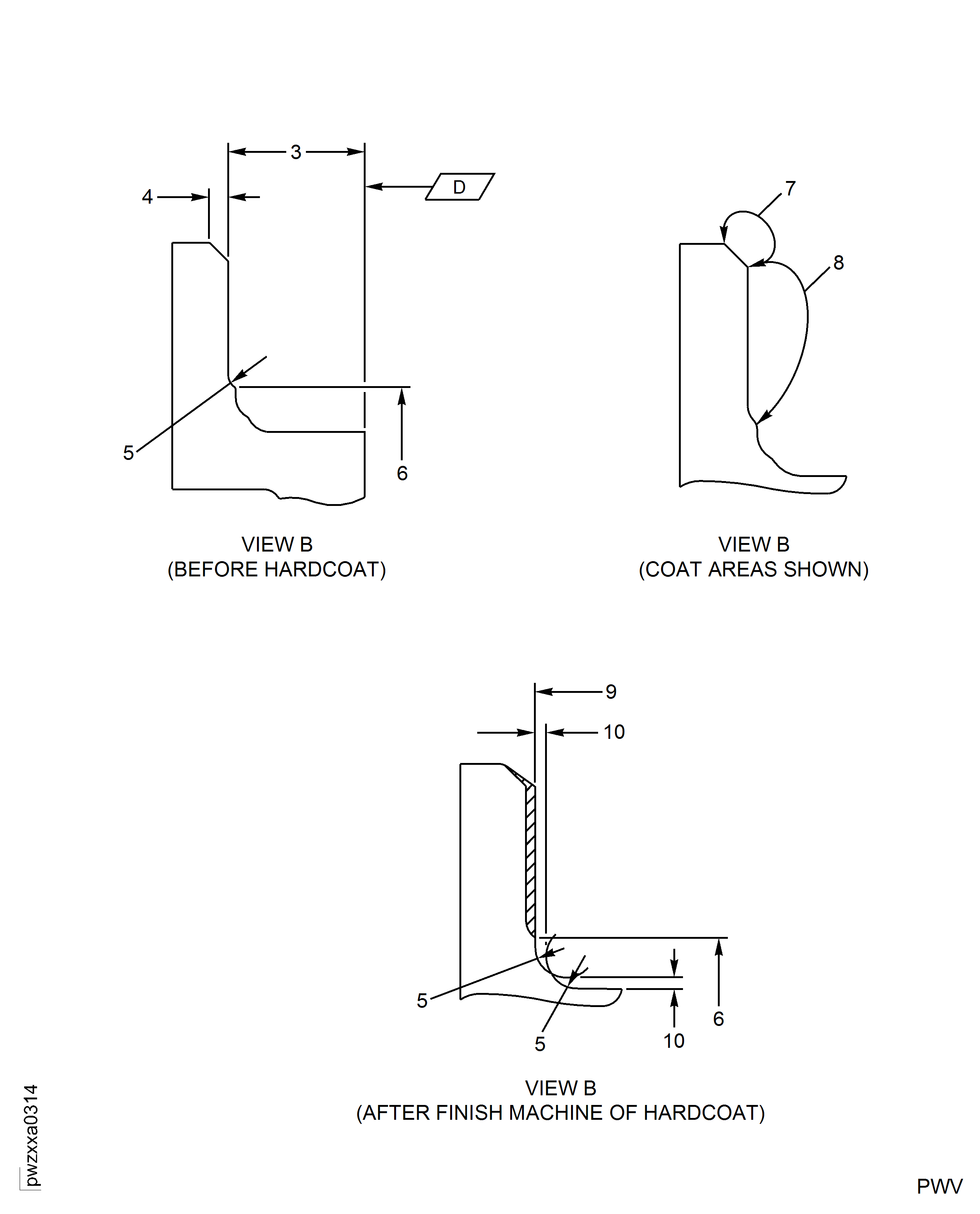Remove hardcoat from the rear flange rear face of the HPC Stage 10 Rotor Path Case Assembly to the limits shown in Figure by one of the options that follow: