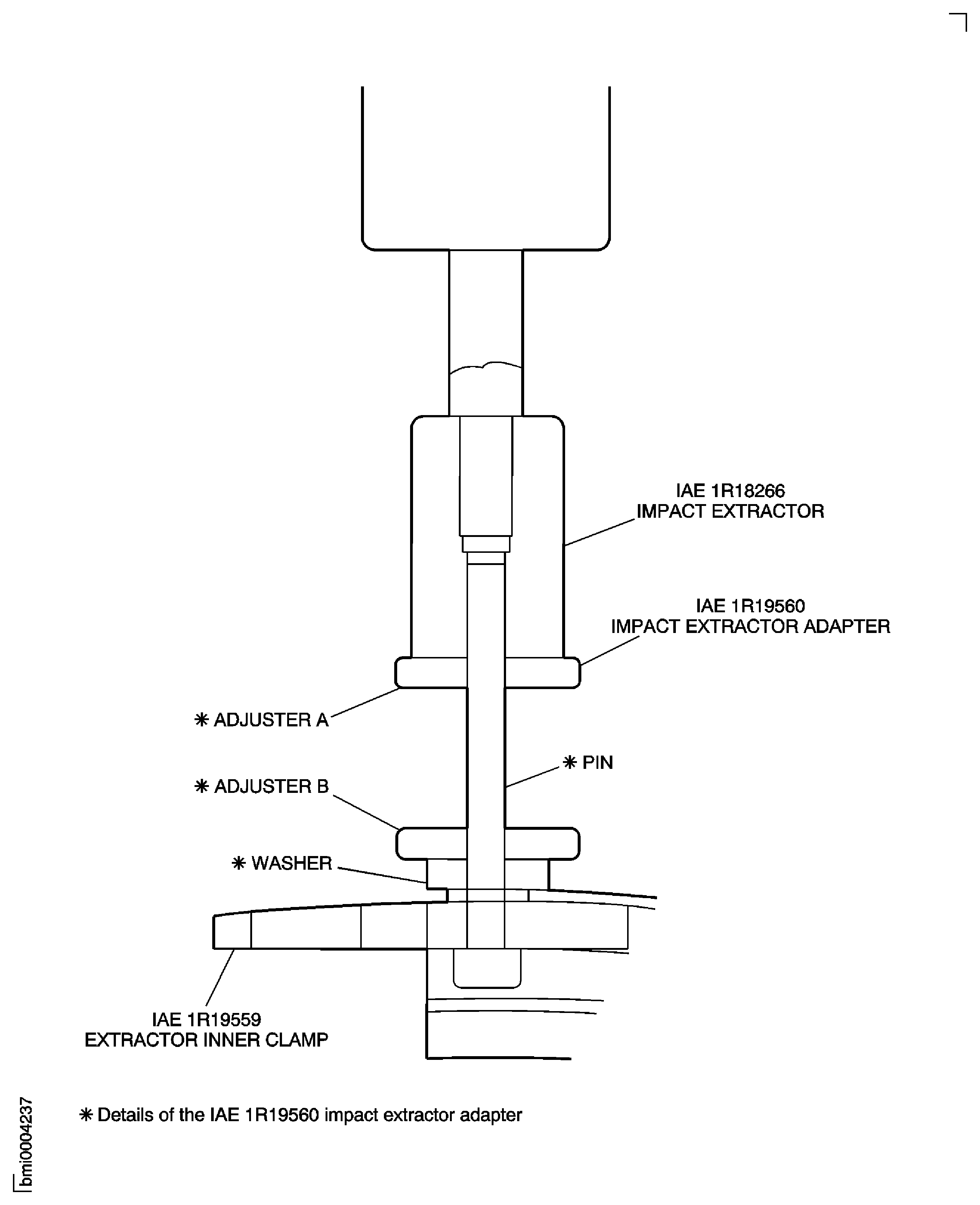 Use IAE 1R19560 Impact extractor adapter 1 off to remove the 50 stage 4 stator vane outer bushes.