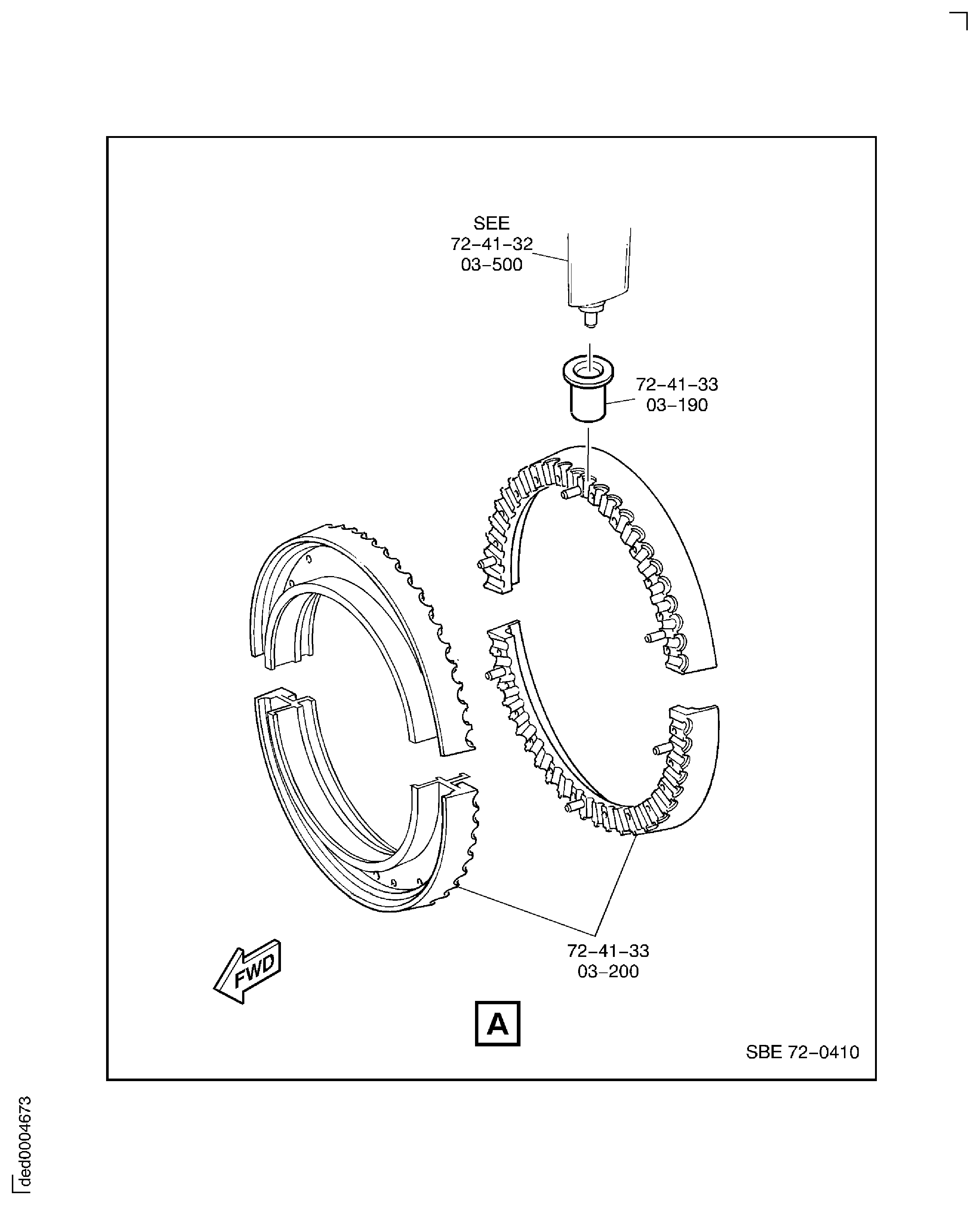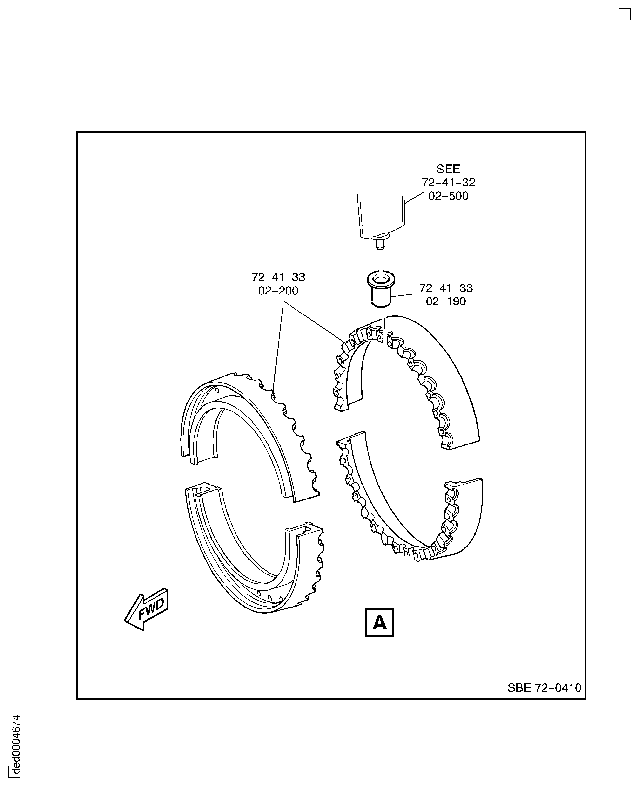 SBE 72-0410: Remove the front half shroud with the integral seal and rear half shroud and the one piece bushes.