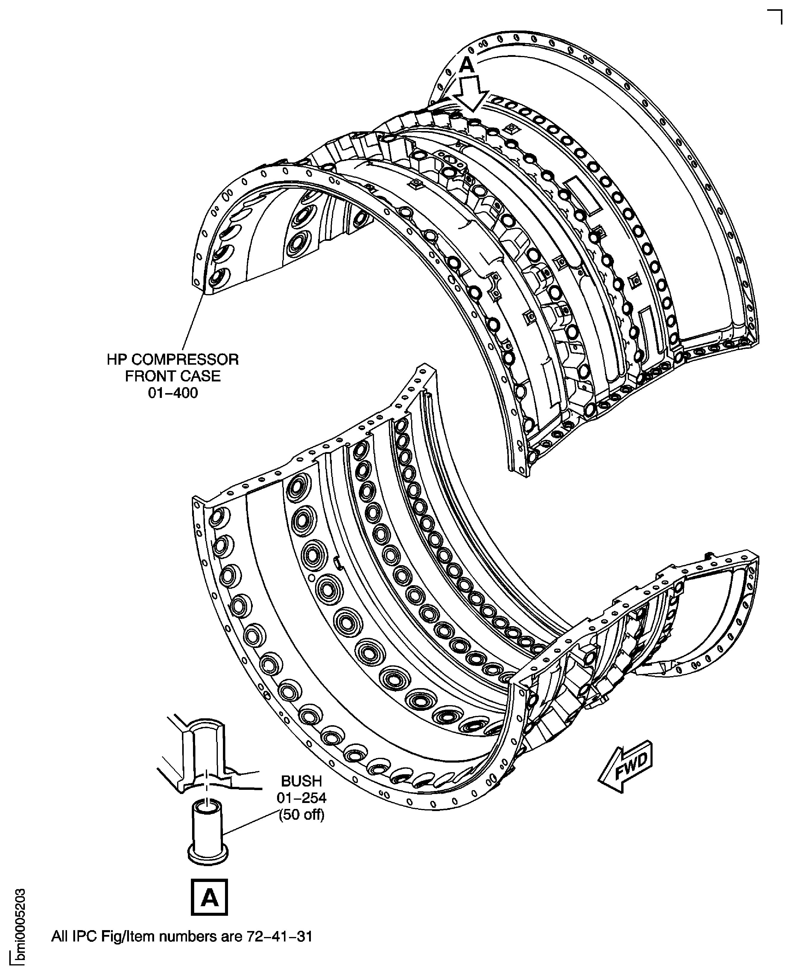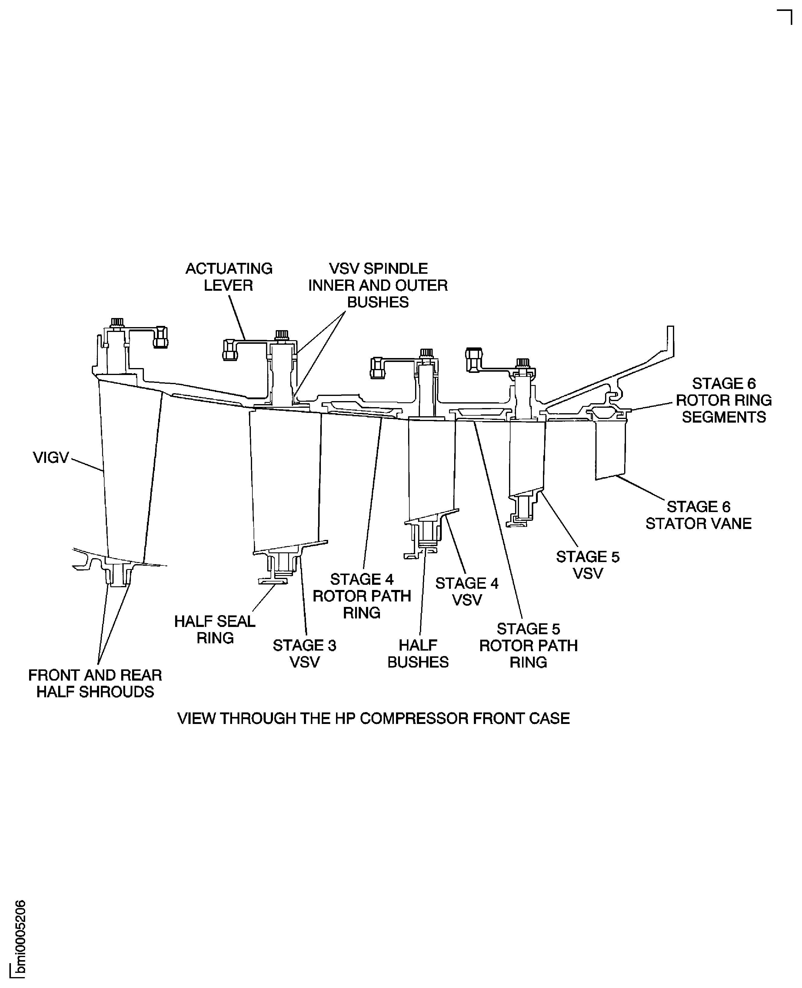 Refer to Figure for a sectional view of the HP Compressor front case.