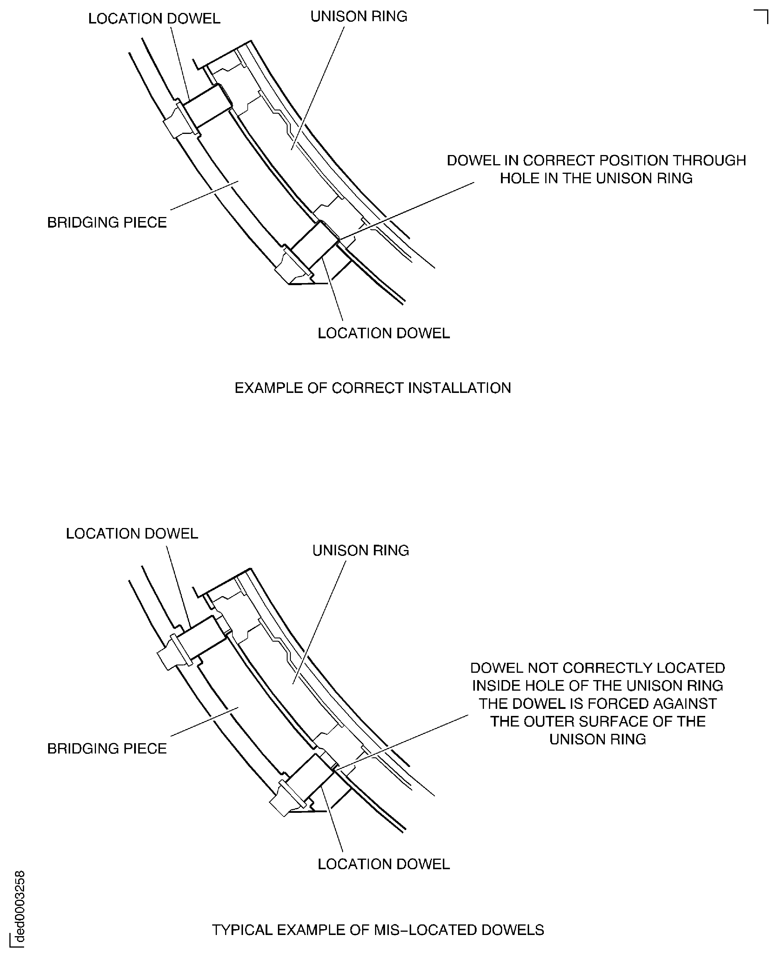 Figure: Check the connector/bridge piece assemblies to VSV actuating ring installation for mis-seated dowels