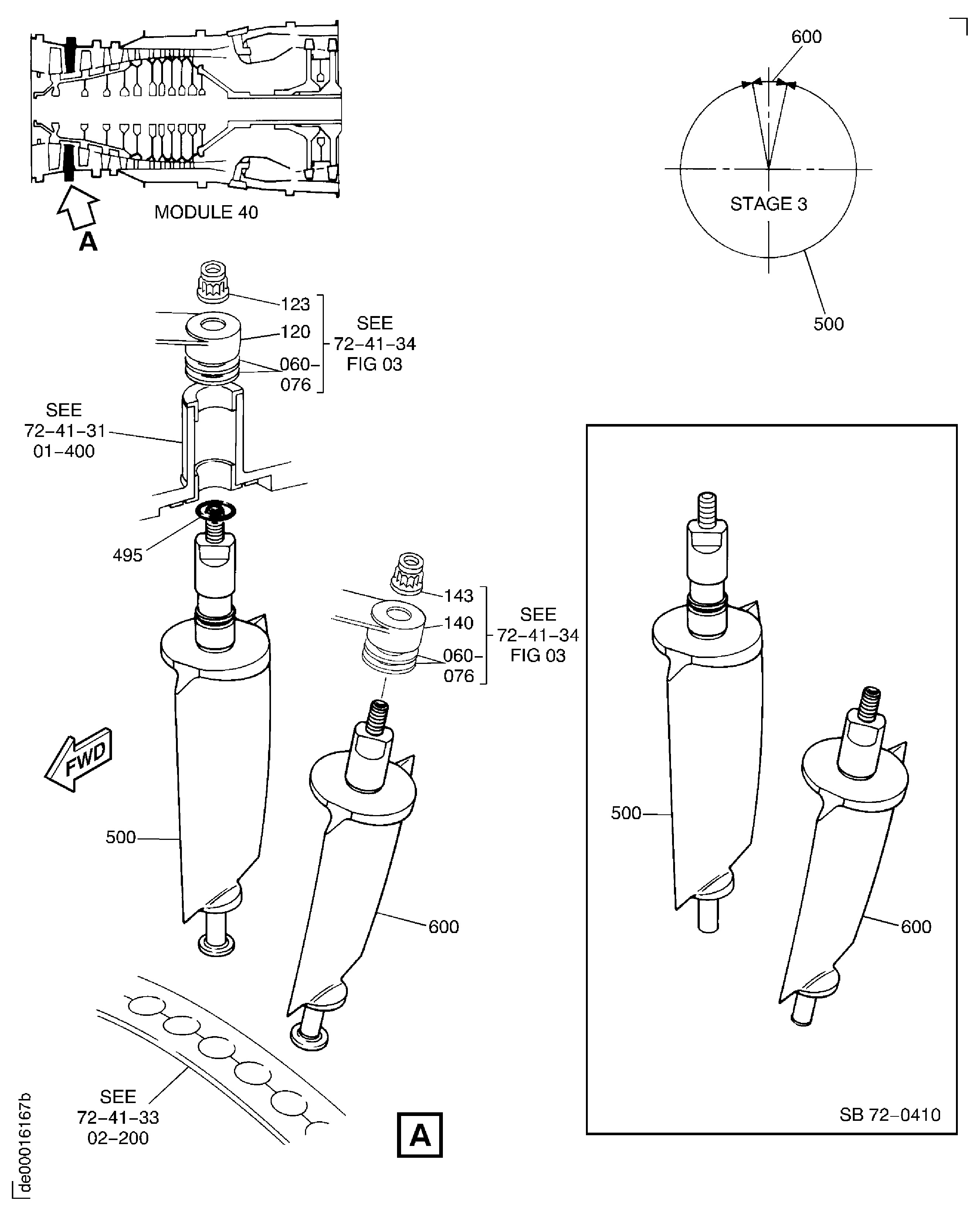 | 600F | 6A8721 | • VANE - SHORT SPINDLE, 3RD STAGE, ASSEMBLY OF POST SBE72-0560 PRE SBE72-0564 | af/05 | 2 |