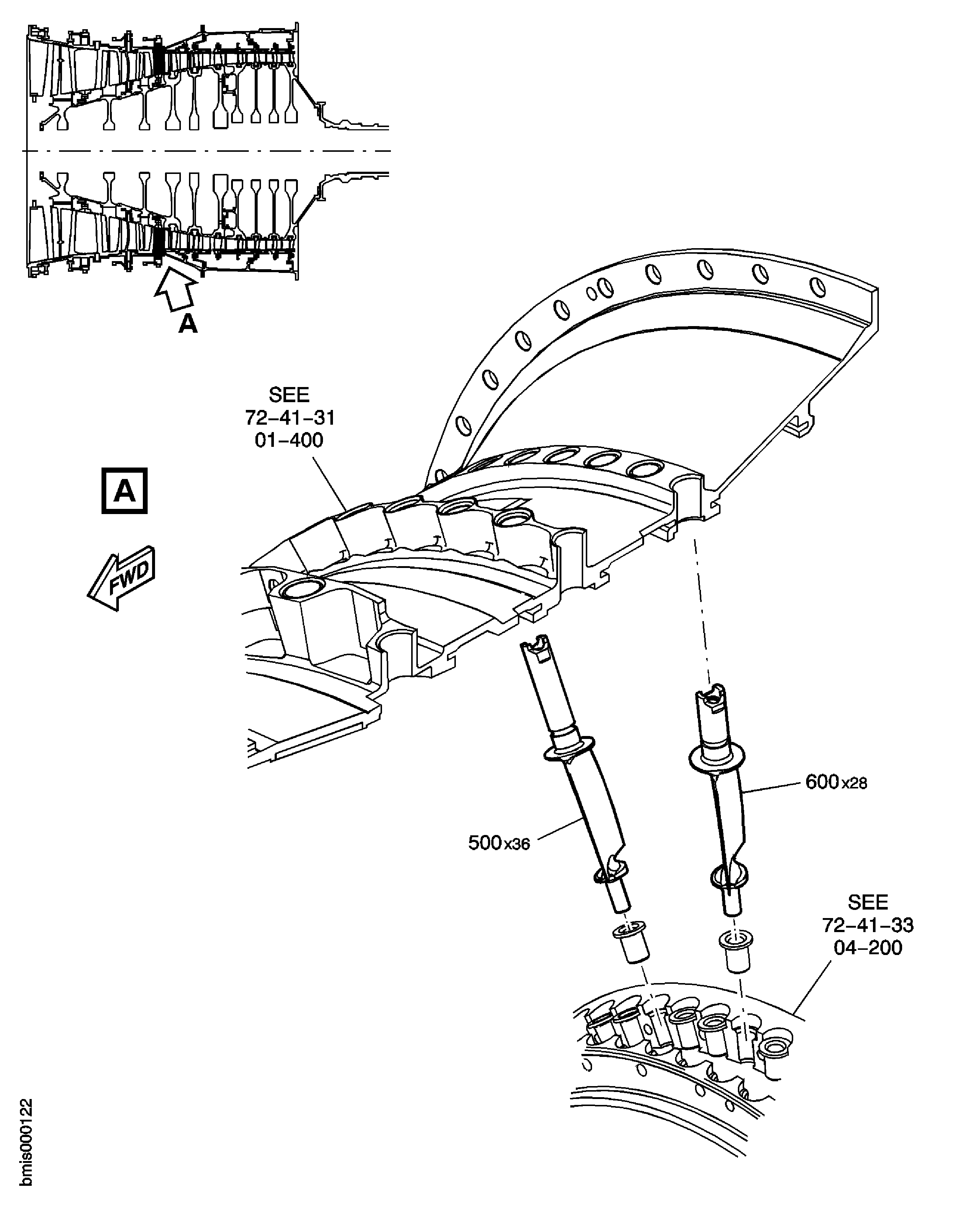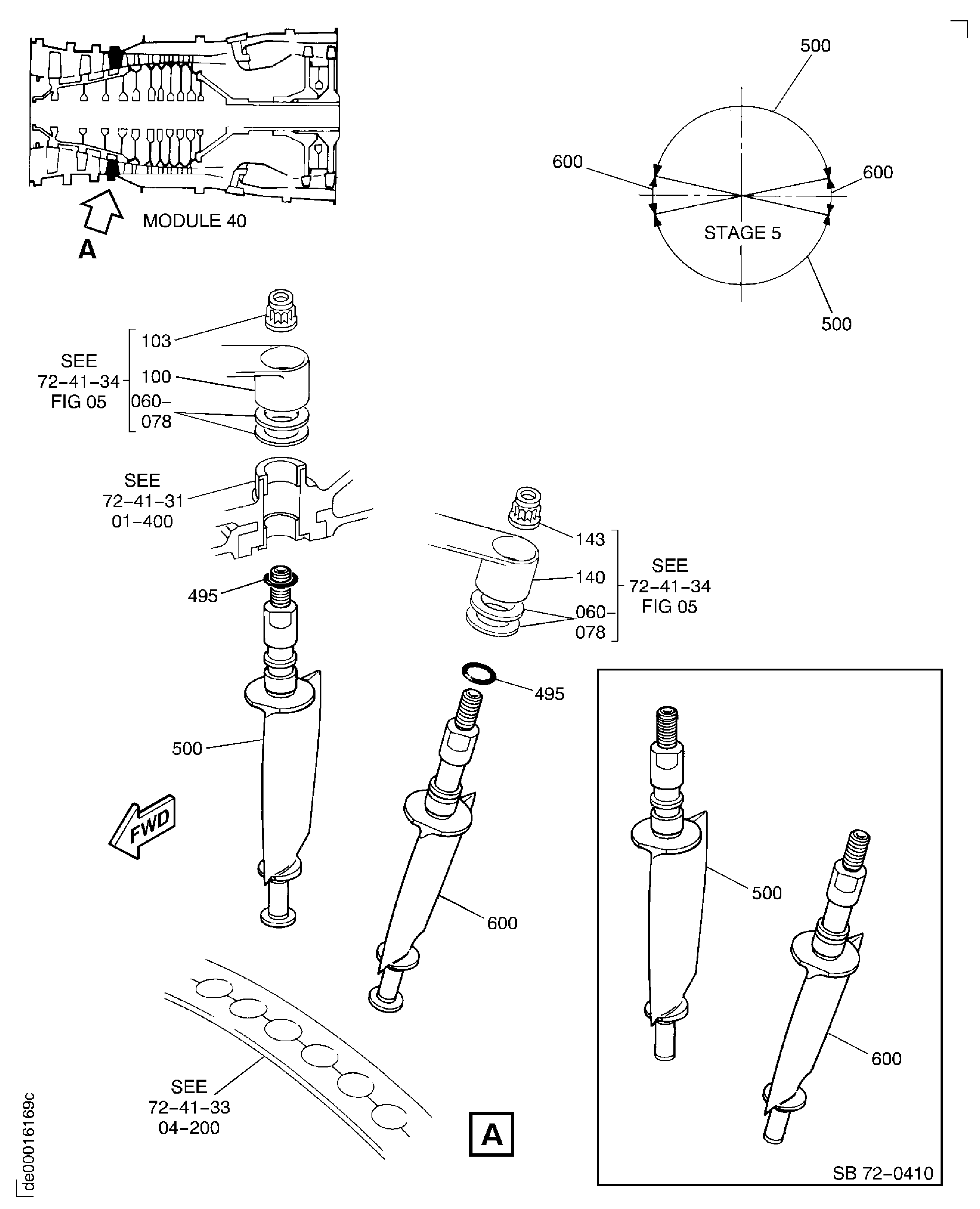 | 600G | 6A8839 | • VANE - LONG SPINDLE, 5TH STAGE, ASSEMBLY OF POST SBE72-0564 PRE SBE72-0571 | ag/05 | 28 |