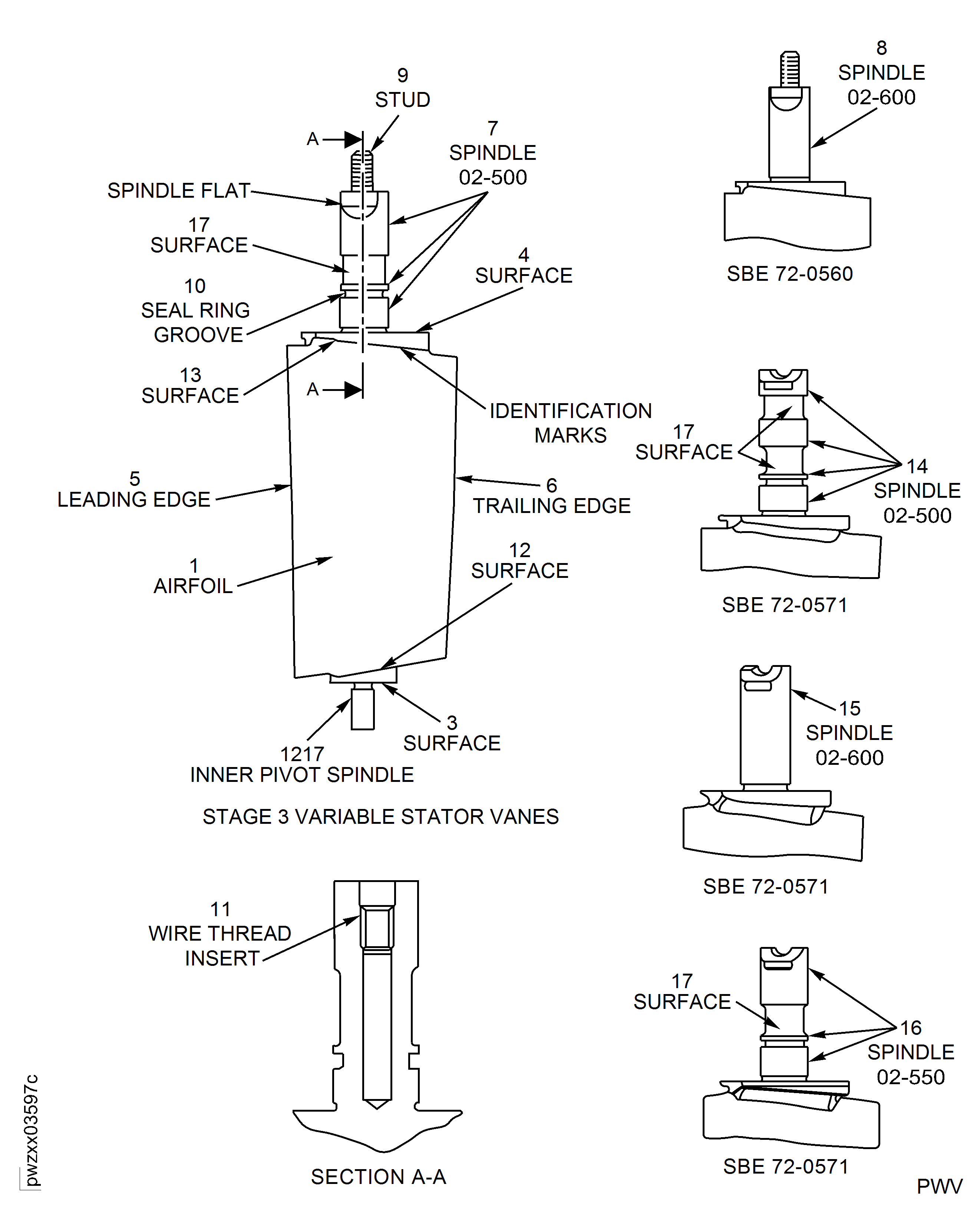 SUBTASK 72-41-32-220-201 Examine the Stage 3 Variable Stator Vanes Spindles at Locations 7, 8, 14, 15 and 16