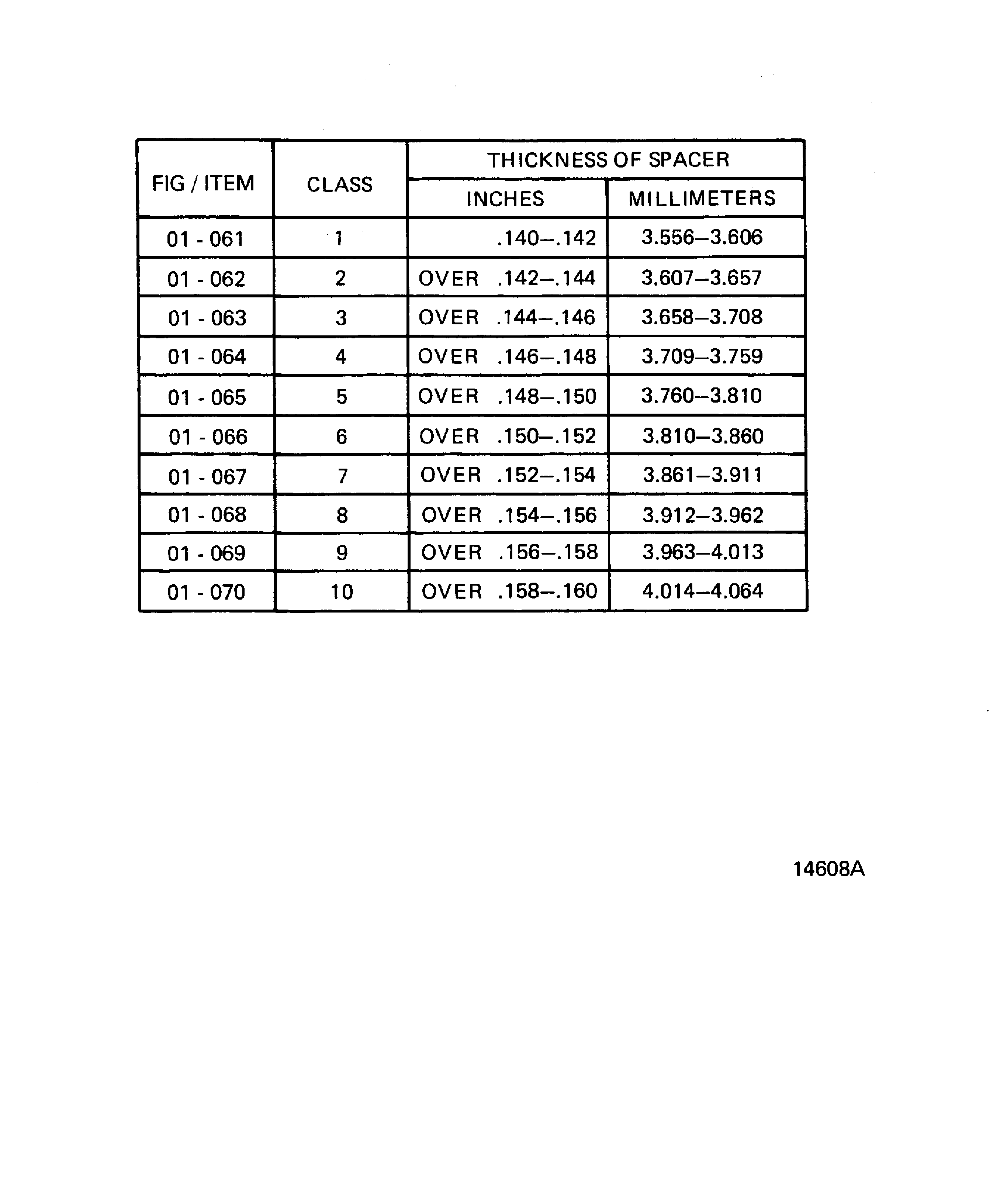 Find the No. 4 bearing spacer HP Turbine (HPT) Rotor And Stator Assembly (72-45-00, 01-061 thru HP Turbine (HPT) Rotor And Stator Assembly 01-070) thickness and get the correct class.