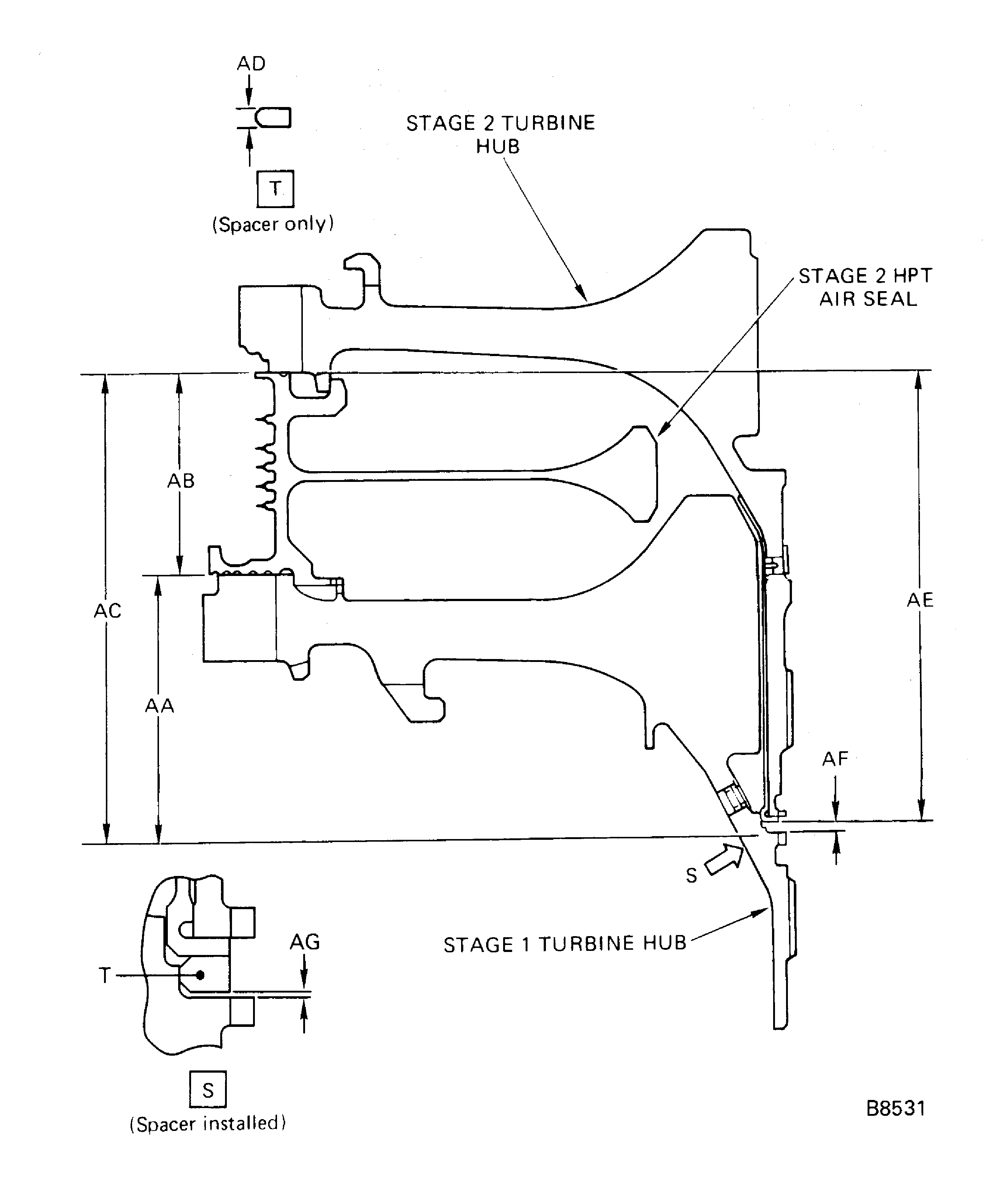 If the dimension AG is not in limits the turbine must be disassembled. Refer to TASK 72-45-00-030-001-B00 (DISASSEMBLY-0001).