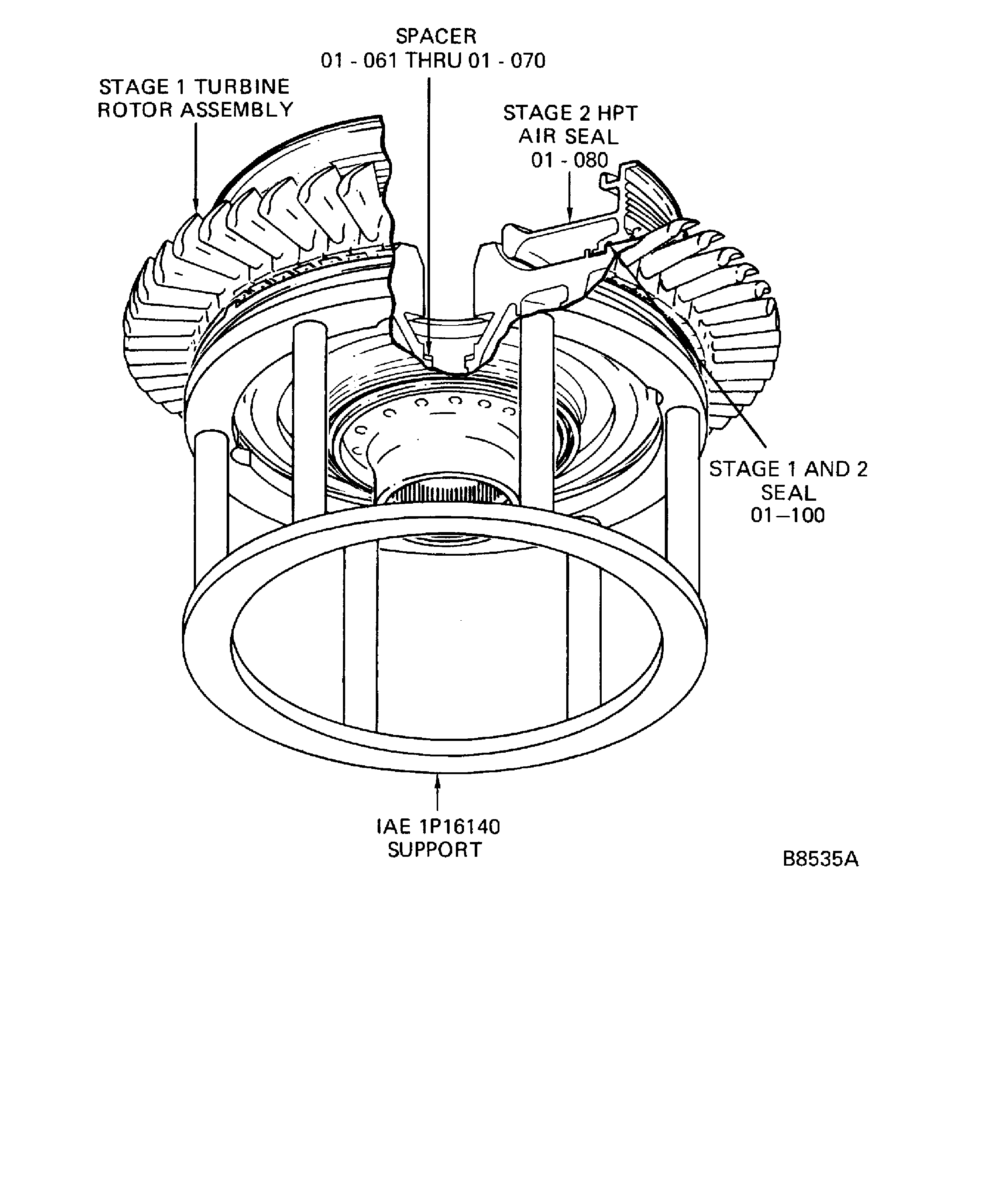 SUBTASK 72-45-00-430-089 Find the Locations for the Stack of the Stage 1 Turbine Rotor Assembly, the Stage 2 HP Air Seal and the Stage 2 Turbine Rotor Assembly