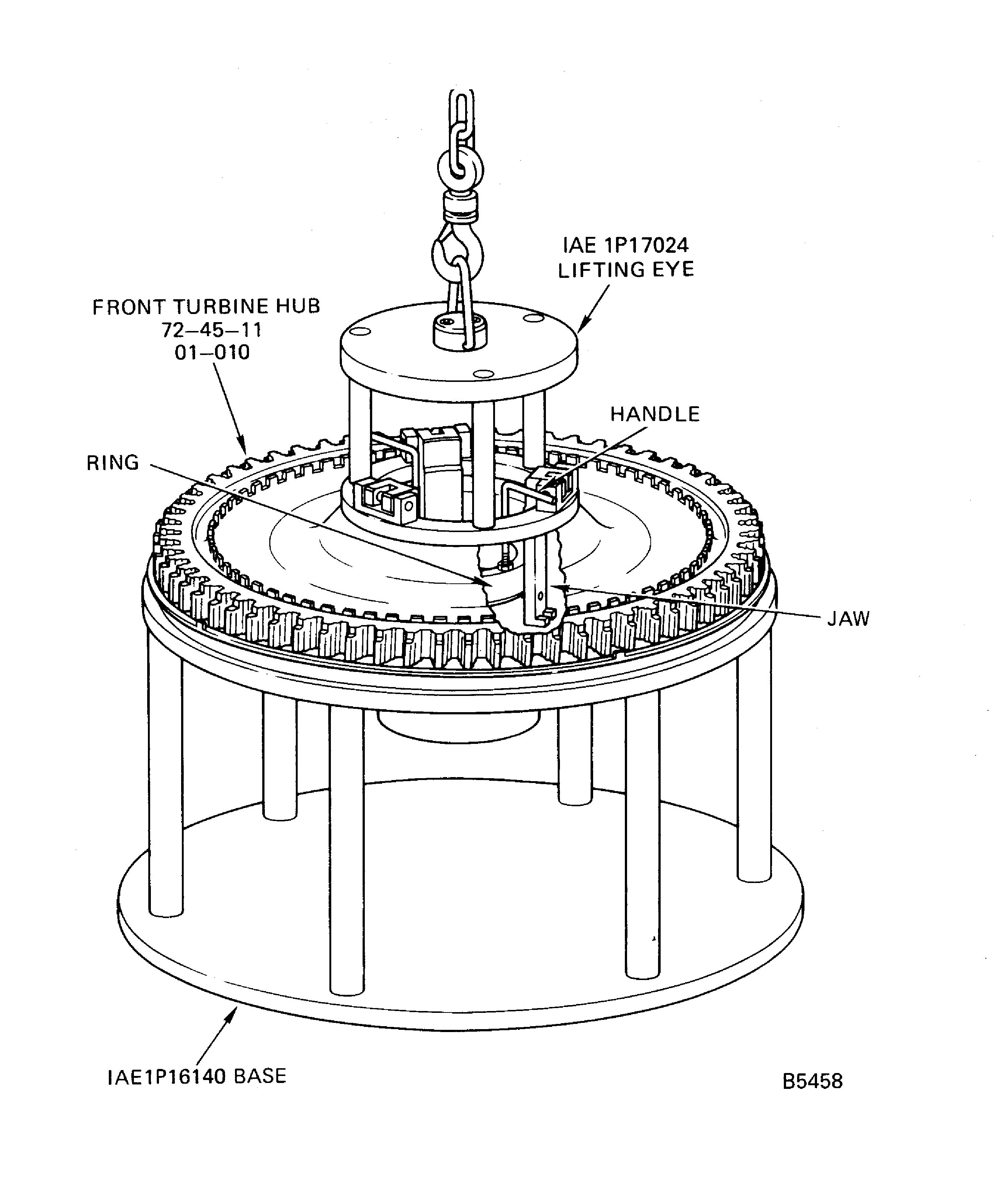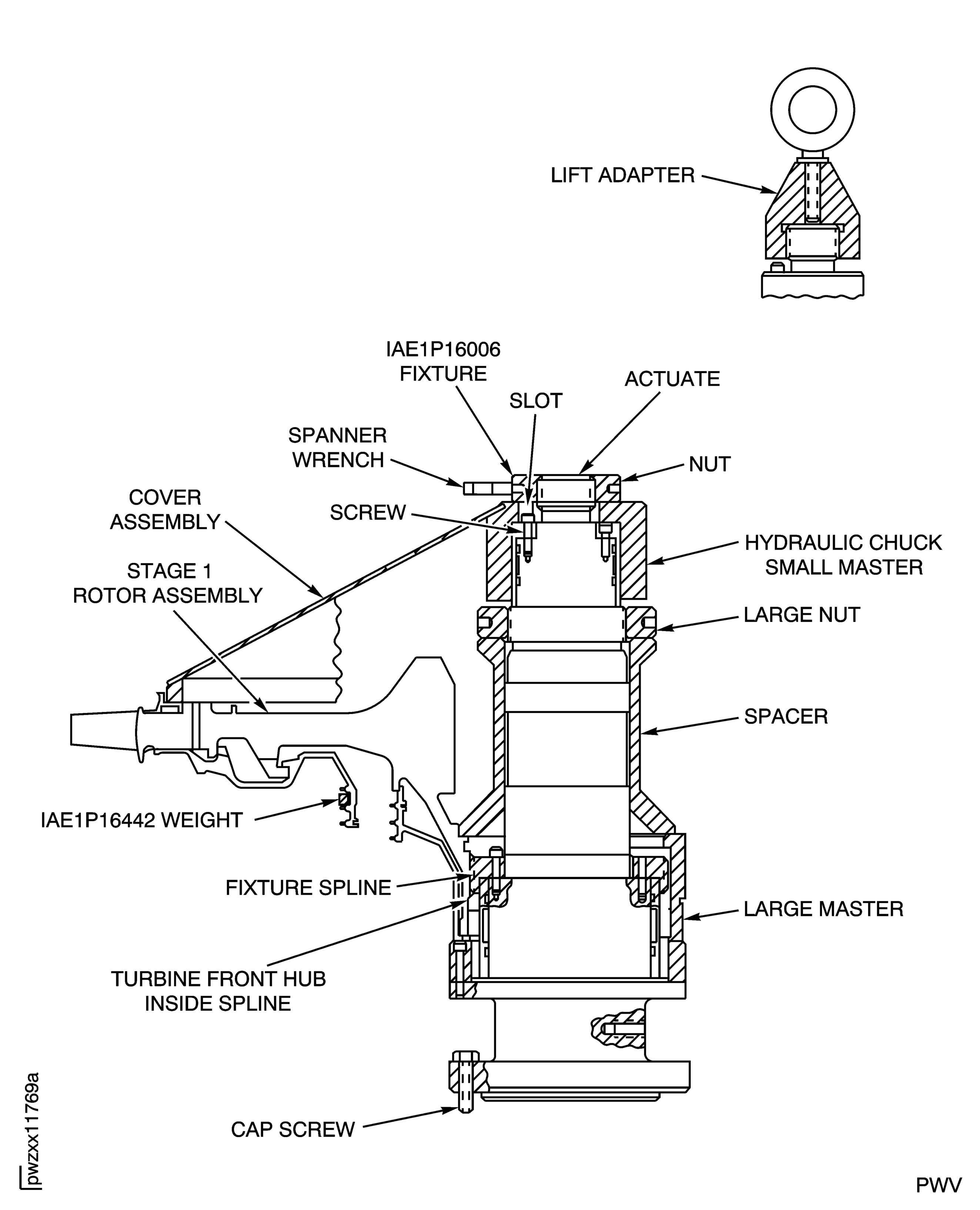Install the IAE 1P17024 Lift fixture 1 off in the bore of the turbine hub.