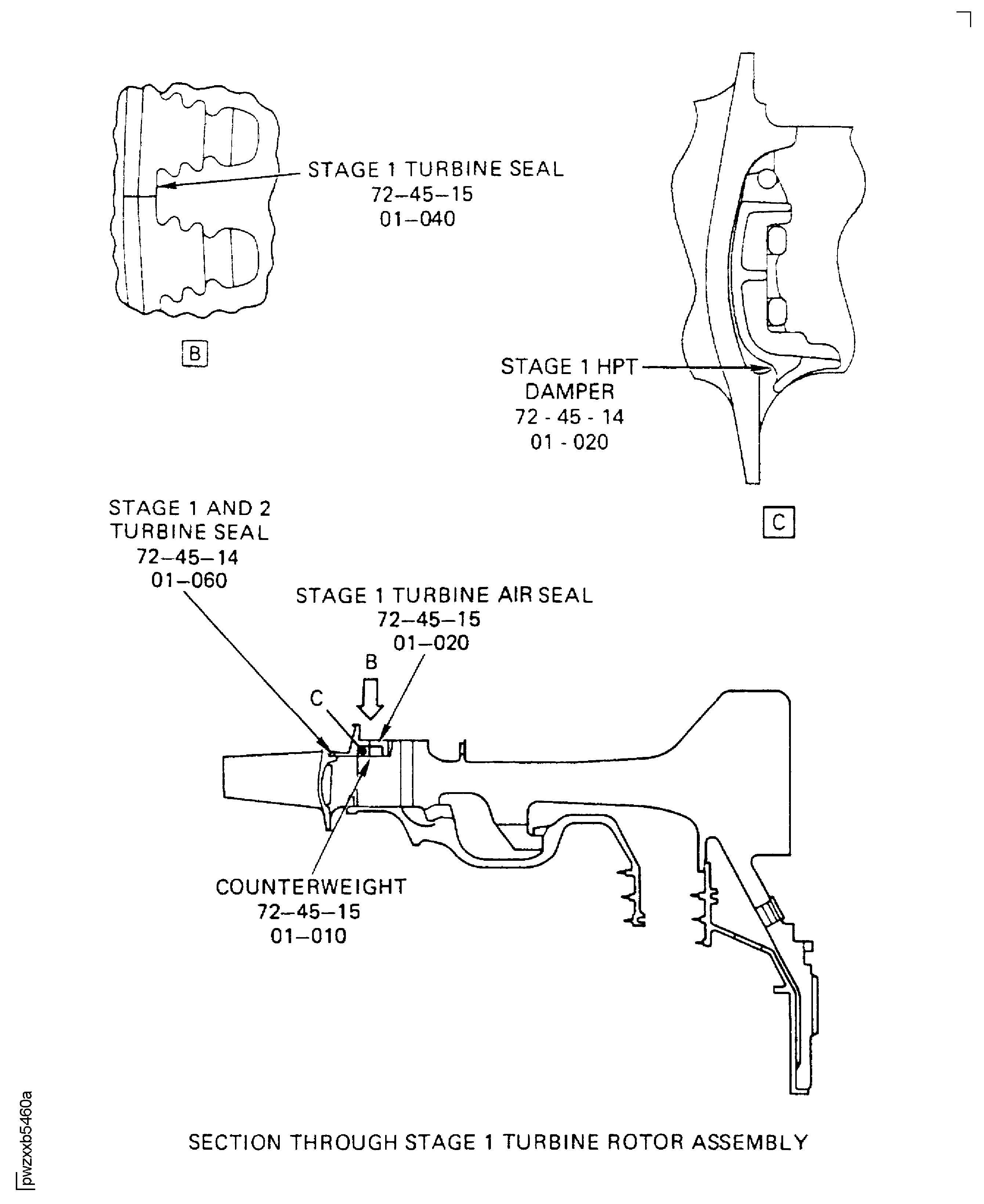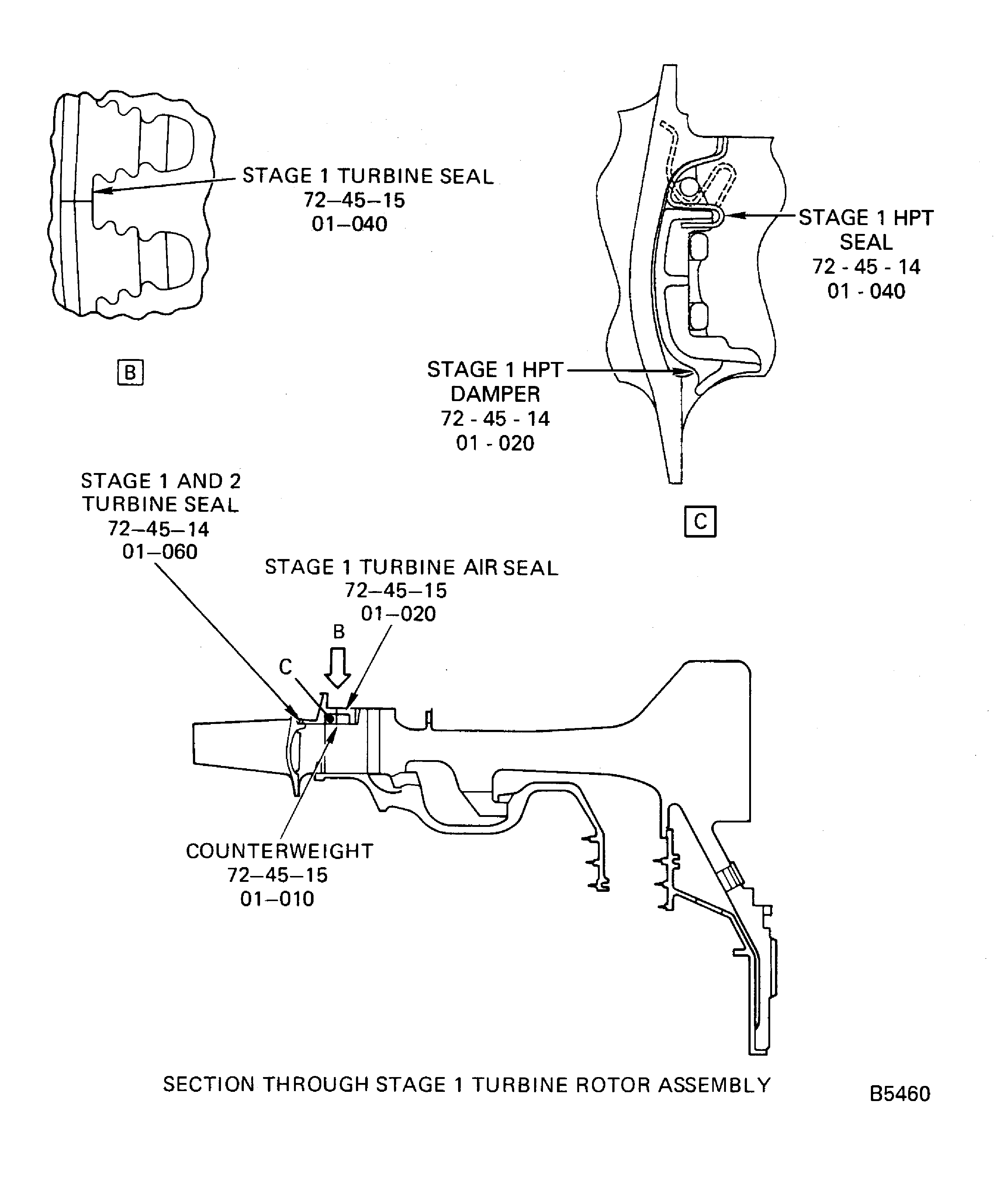 Correct unbalance to within 3 oz in (2160 gm mm) by moving stage 1 HPT blades (Figure) and/or stage 1 turbine air seals ENGINE-STAGE 1 AIR SEAL (REAR) (72-45-15, 01-020), Figure and Figure.