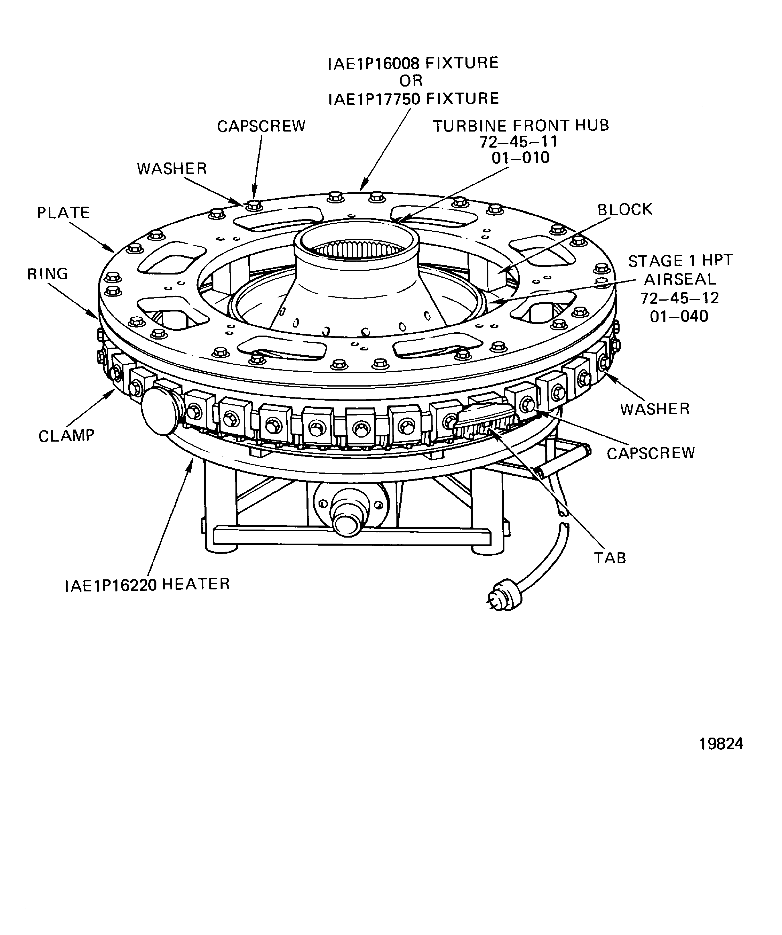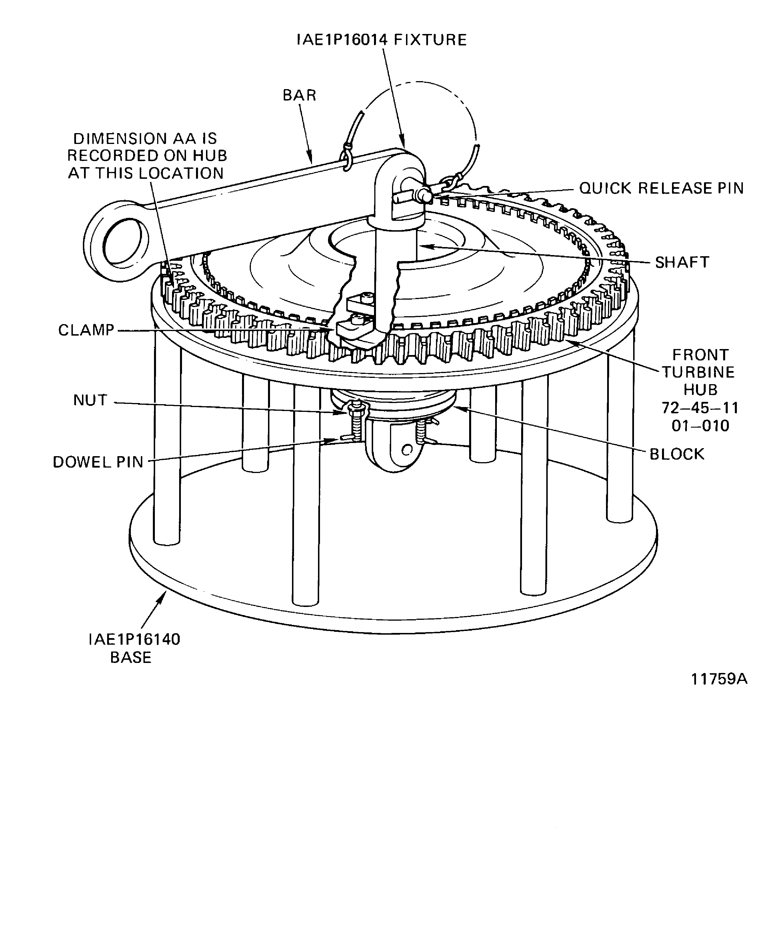 Install the IAE 1P16014 Fixture 1 off to the turbine front hub. Refer to Step.