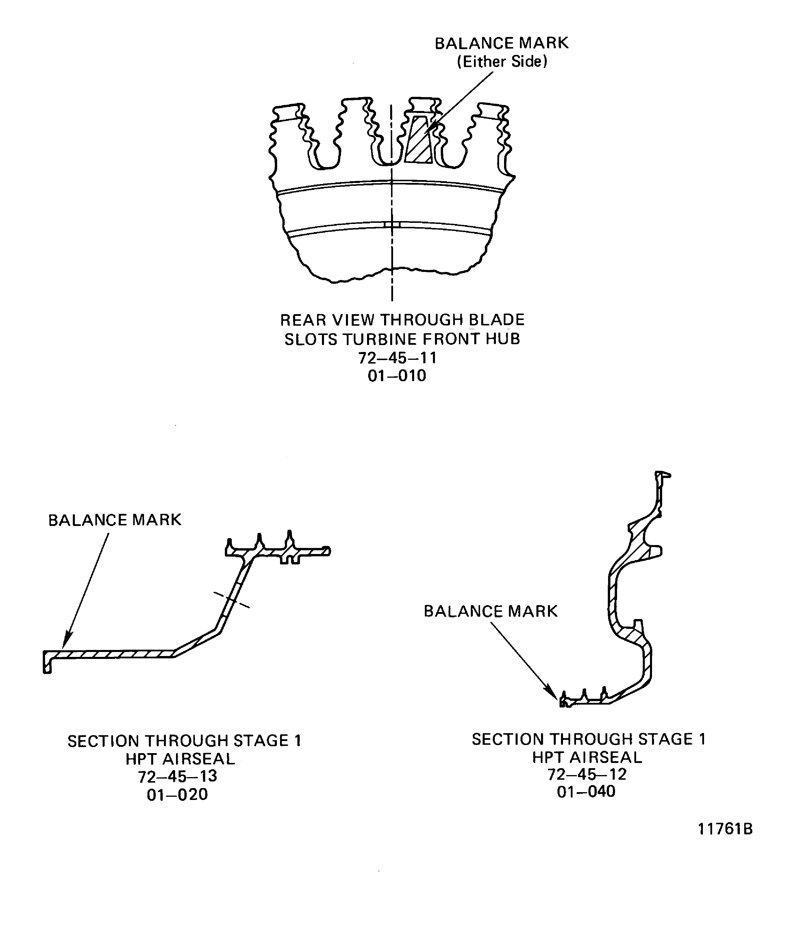 Put the stage 1 HPT airseal so that the balance mark is in the correct position to complete the vector stack with the turbine front hub and the other stage 1 HPT airseal Figure.