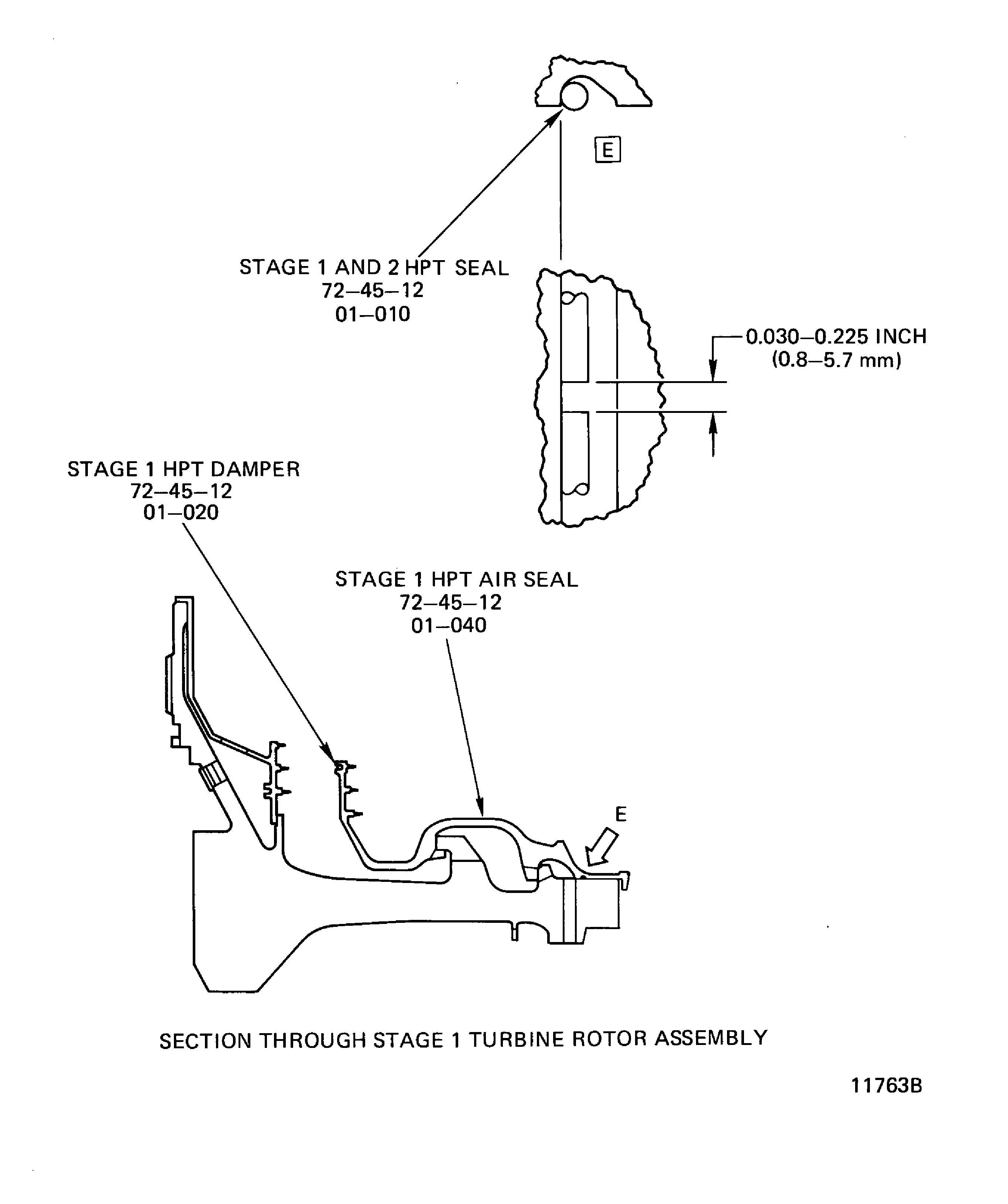 Install a new stage 1 and 2 HPT seal ENGINE-STAGE 1 HPT AIR SEAL (OUTER) (72-45-12, 01-010) in to the groove in the flange face of the stage 1 HPT seal and do a check of the end gap, Figure.