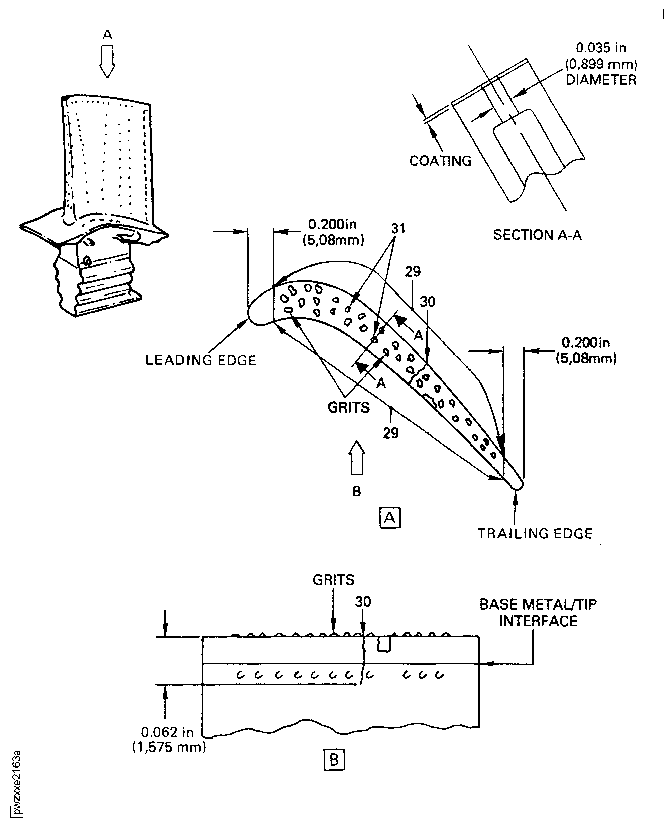 If new or fully repaired Stage 1 HPT Duct Segments (BOAS) are to be installed, two thirds of Stage 1 HPT blades must have fully repaired tips. One third of the blades can have complete, partial, or no tip coating.There is base metal that shows on the base metal/tip interface at Location 29