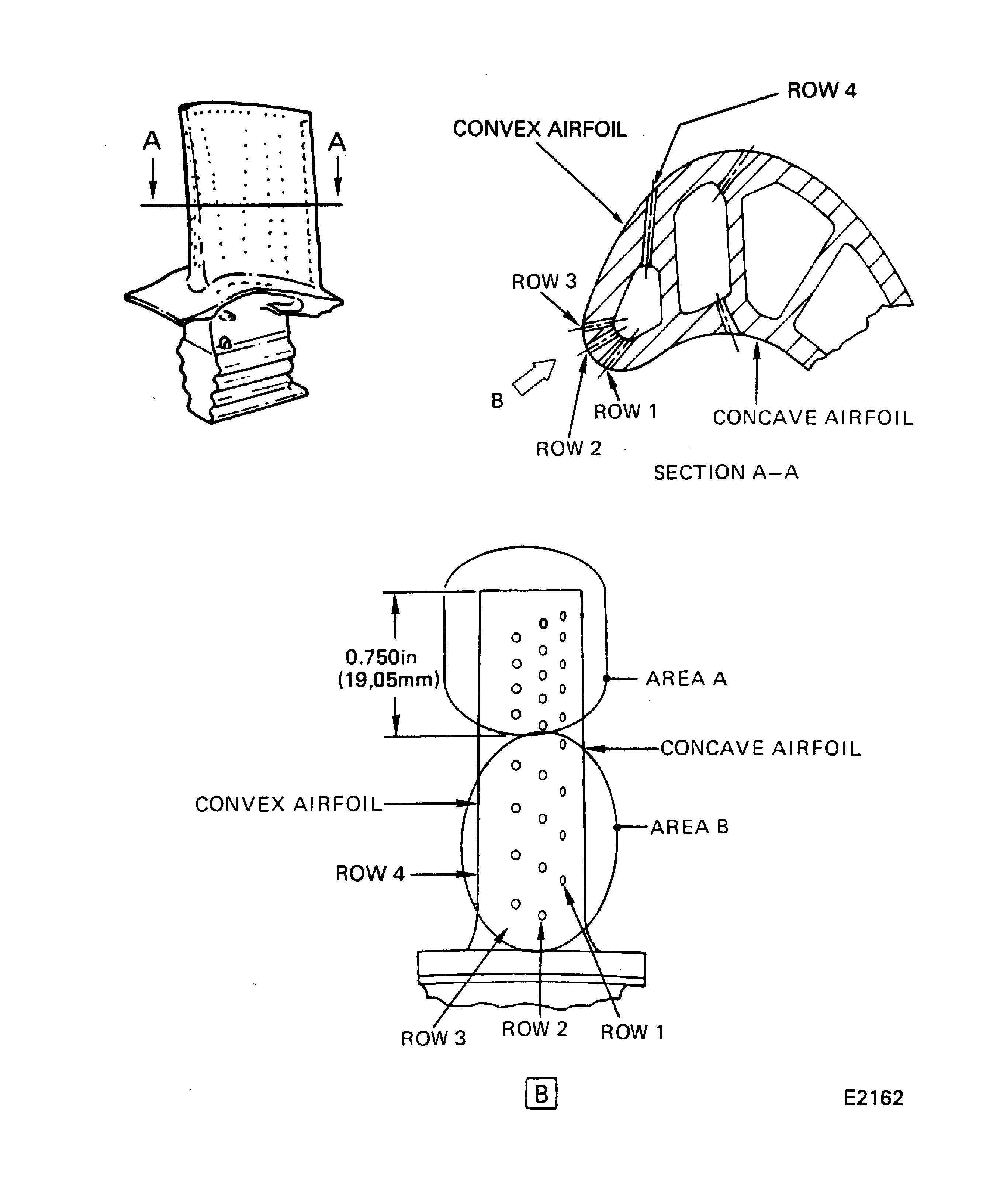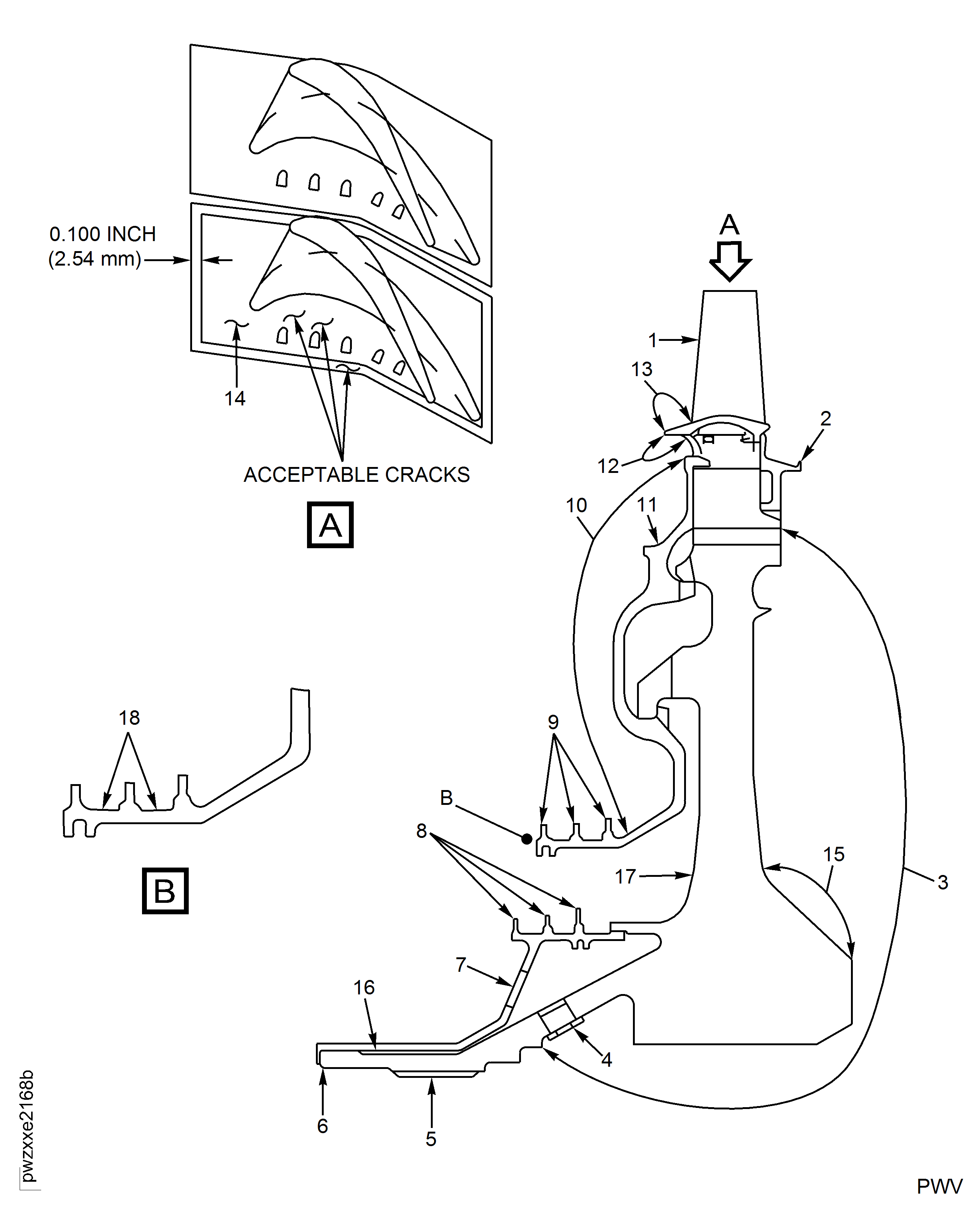 YOU MUST BE VERY CAREFUL DURING THE INSPECTION OR HANDLING OF THE PARTS. INCORRECT HANDLING, SUCH AS TOUCHING THE BLADES WITH DIRTY HANDS, OR DROPPING THE BLADES ON THE GROUND, CAN CAUSE CHIPPING OF THE THERMAL BARRIER COATING AND DISCOLORATION OF THE BLADES.Refer to Figure