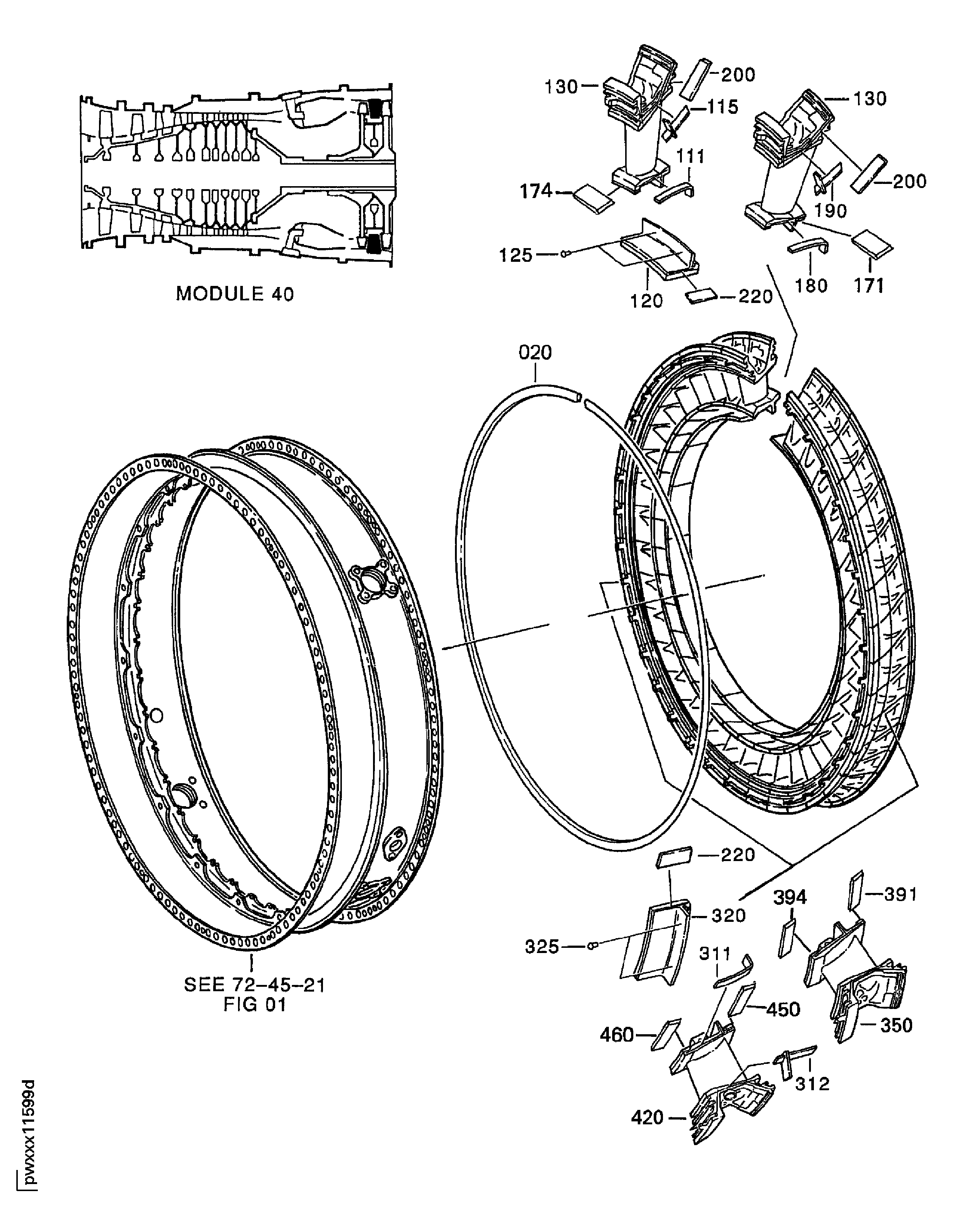 | 394 | 2A2282 | • • • RING SEGMENT AND VANE CLUSTER - HPT, 2ND STAGE, ASSEMBLY OF | aa-ak/01 | 1 |