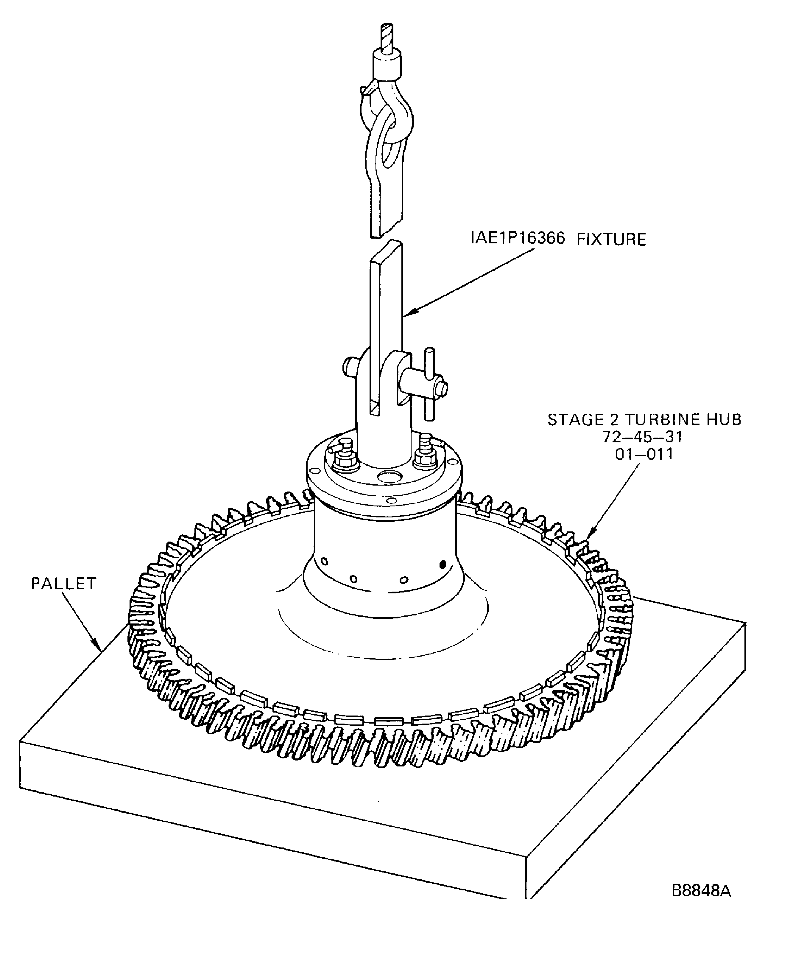 SUBTASK 72-45-30-440-087 Install the Fixture and Remove the Stage 2 Turbine Hub (72-45-31, 01-011) from the Pallet