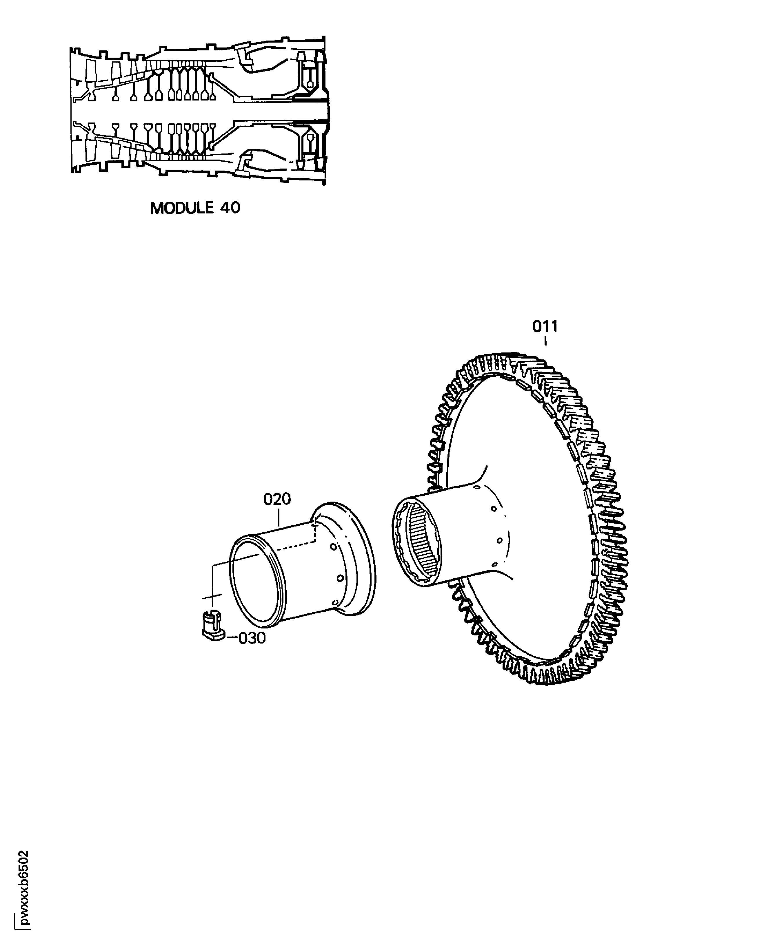 | 011A | 2A3002 | • HUB - TURBINE, 2ND STAGE, ASSEMBLY OF POST SBE72-0145 | ab-ad/02 | 1 |