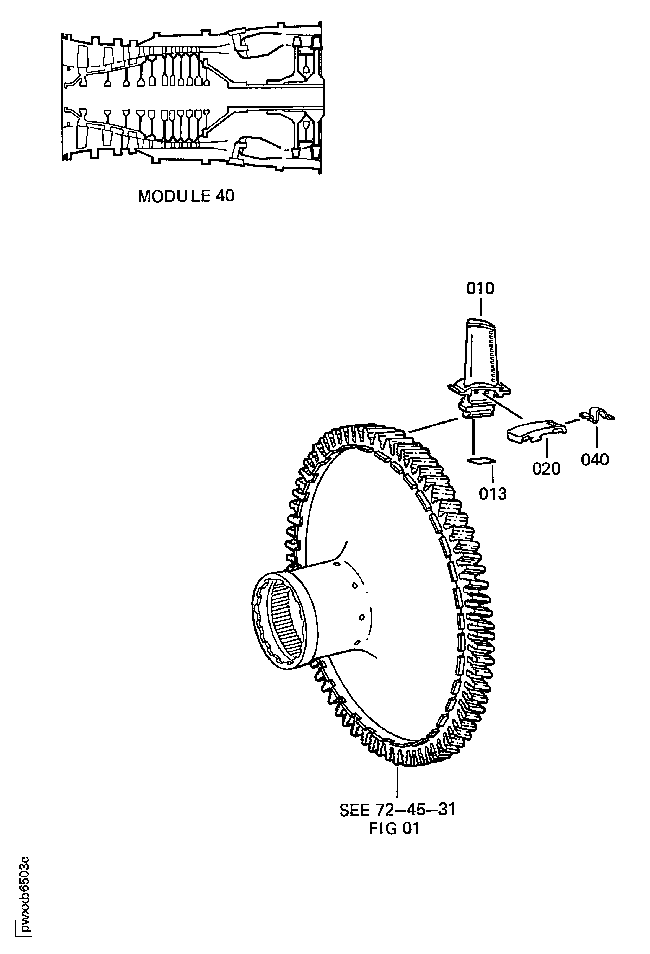 | 010 | 2A2202 | • BLADE - HPT, 2ND STAGE, ASSEMBLY OF PRE SBE72-0187 | aa/01 | 72 |