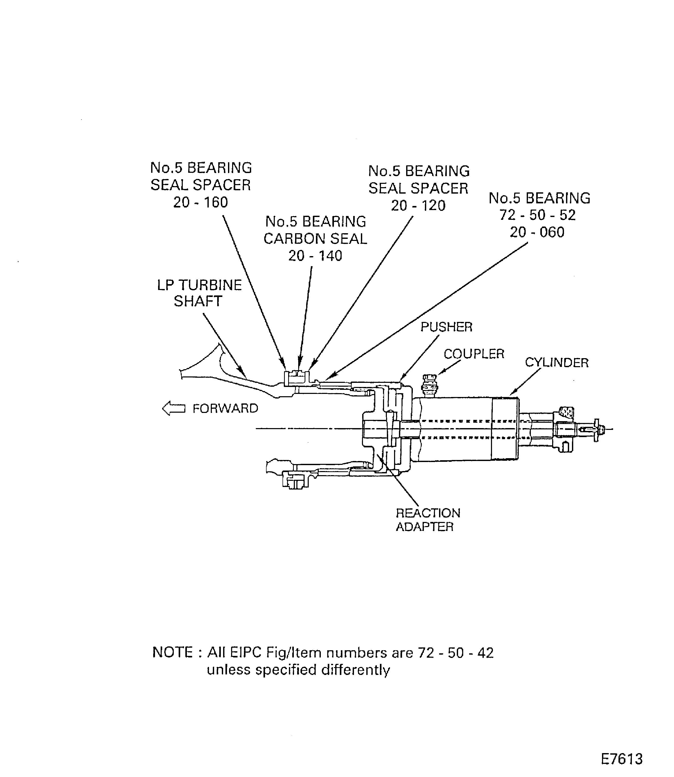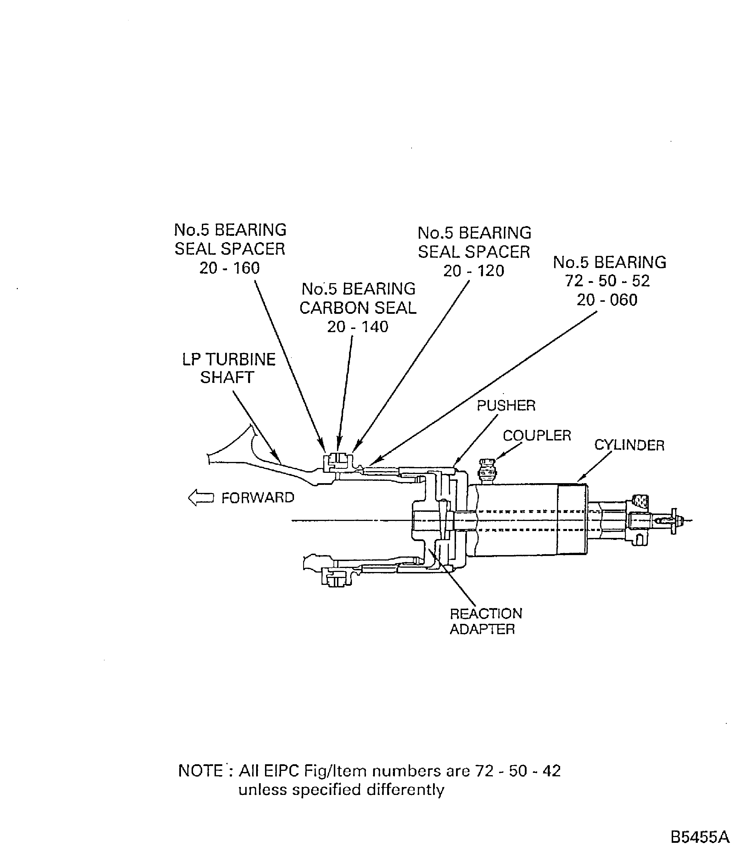 Install the No. 5 bearing seal spacer ENGINE-NO.5 BEARING ASSEMBLY AND SEAL (72-50-42, 20-160) to the rear end of the LP turbine shaft.
