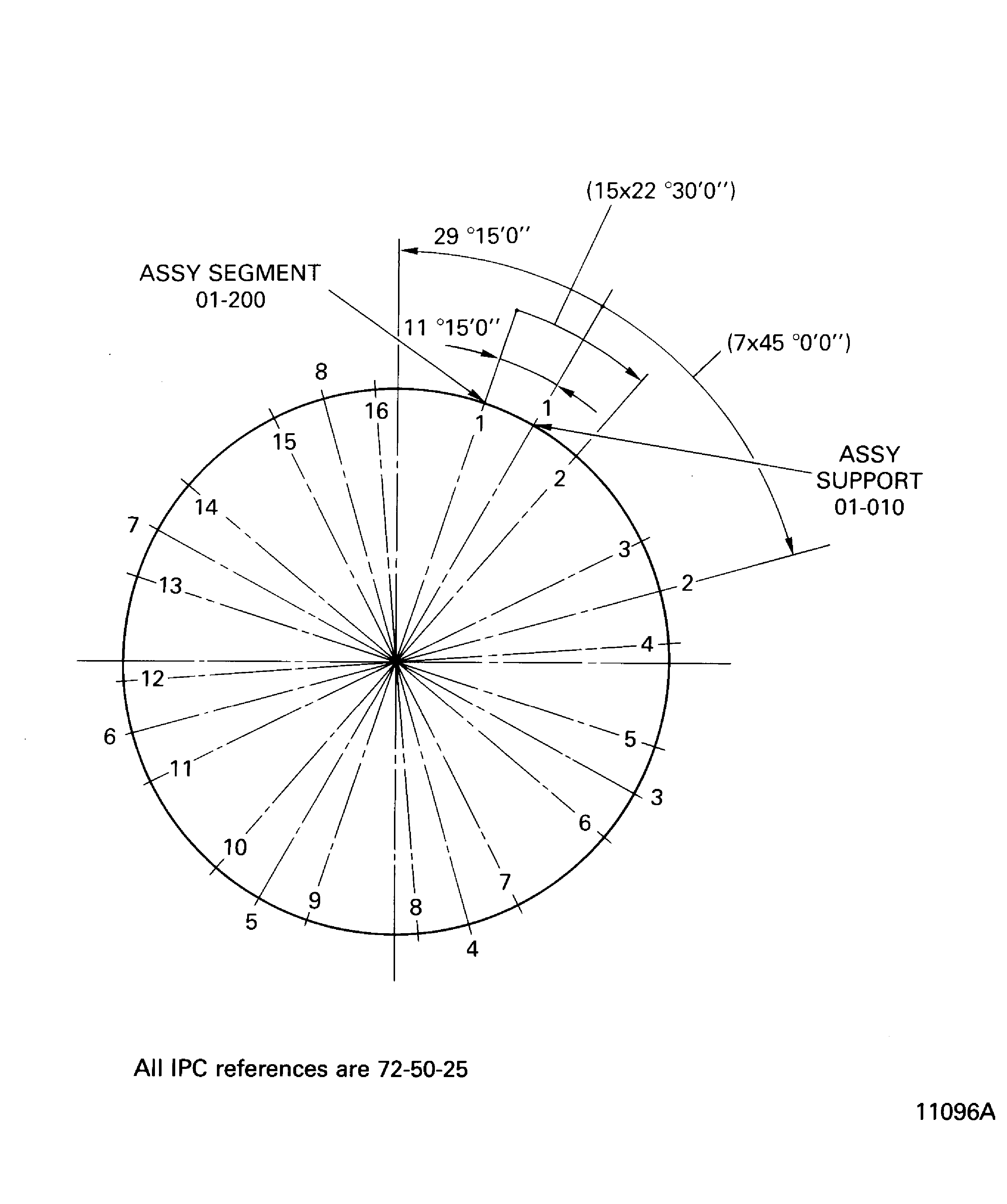 Figure: Position of the Assembly Segments and the Assembly Supports of the Stage 3 Outer Duct