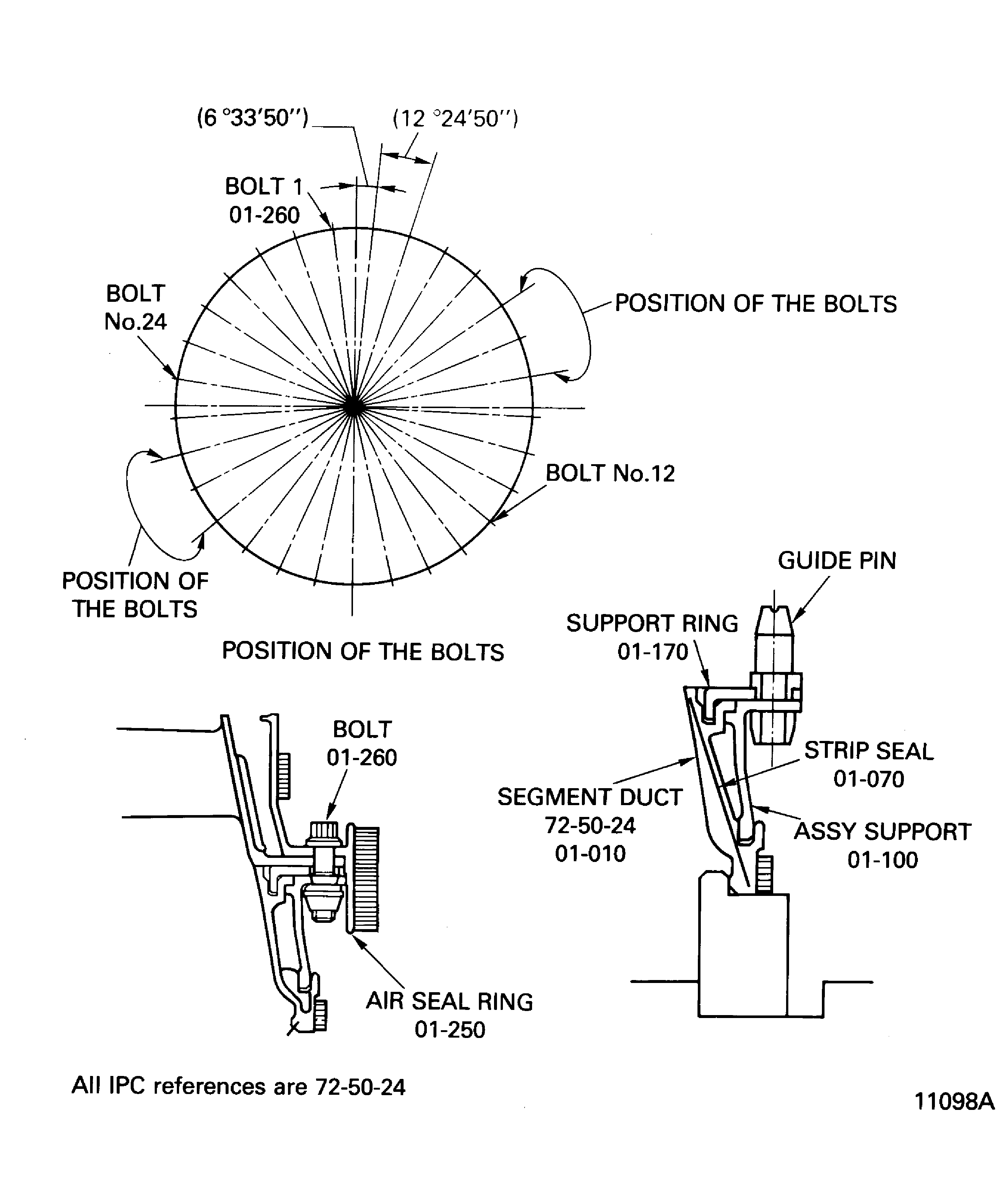 Install the 12 strip seals to the 12 inner duct segments. Use CoMat 10-062 ASSEMBLY FLUID.